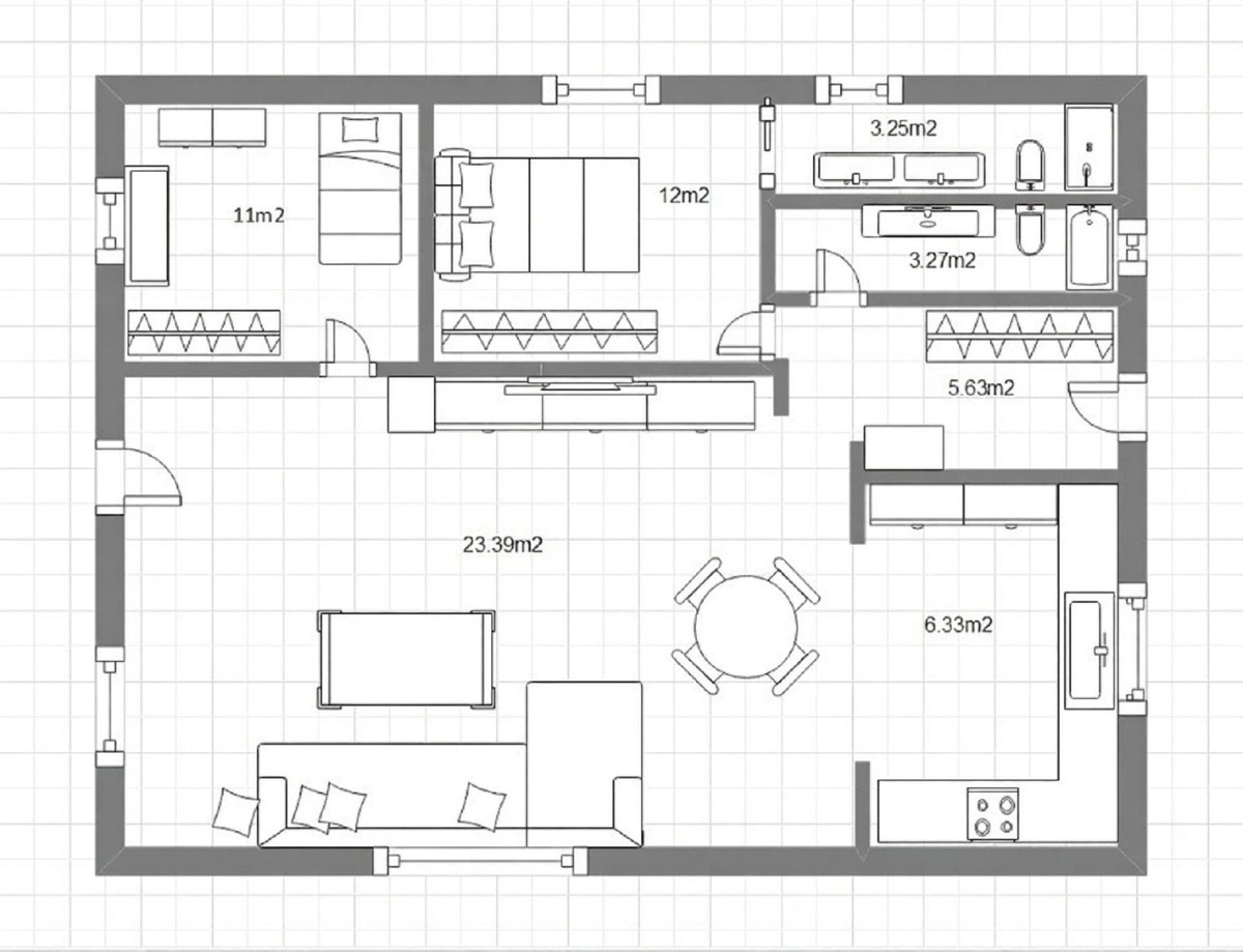 The villa is arranged on one level and comprises two bedrooms and two bathrooms. Inside, you’ll find a bright, modern interior with an open-plan layout and a brand-new fitted kitchen. Natural light fills the home, creating a spacious and airy feel throughout. The property can be accessed from both the front and the rear. Entering through the main door, you step into a generous lounge and dining area leading to the kitchen. Off the lounge is the first double bedroom, currently used as a child’s room, complete with fitted wardrobes and ample space. A short hallway, with additional storage wardrobes, connects to the master bedroom—a large, comfortable space with fitted wardrobes and a stylish en-suite bathroom featuring a walk-in shower. Adjacent to the master is the family bathroom, fitted with both bath and shower. Both bathrooms have been recently renovated to a very high standard.