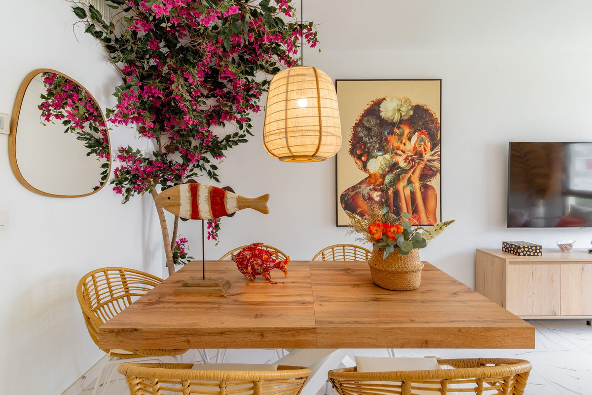Au cœur de l'appartement se trouve un grand espace salon-salle à manger ouvert, parfaitement relié à une cuisine design entièrement équipée d'appareils électroménagers de pointe. De là, vous accédez à une terrasse privée offrant une vue imprenable sur la mer, le cadre idéal pour des petits-déjeuners ensoleillés ou des dîners inoubliables face à la Méditerranée.
