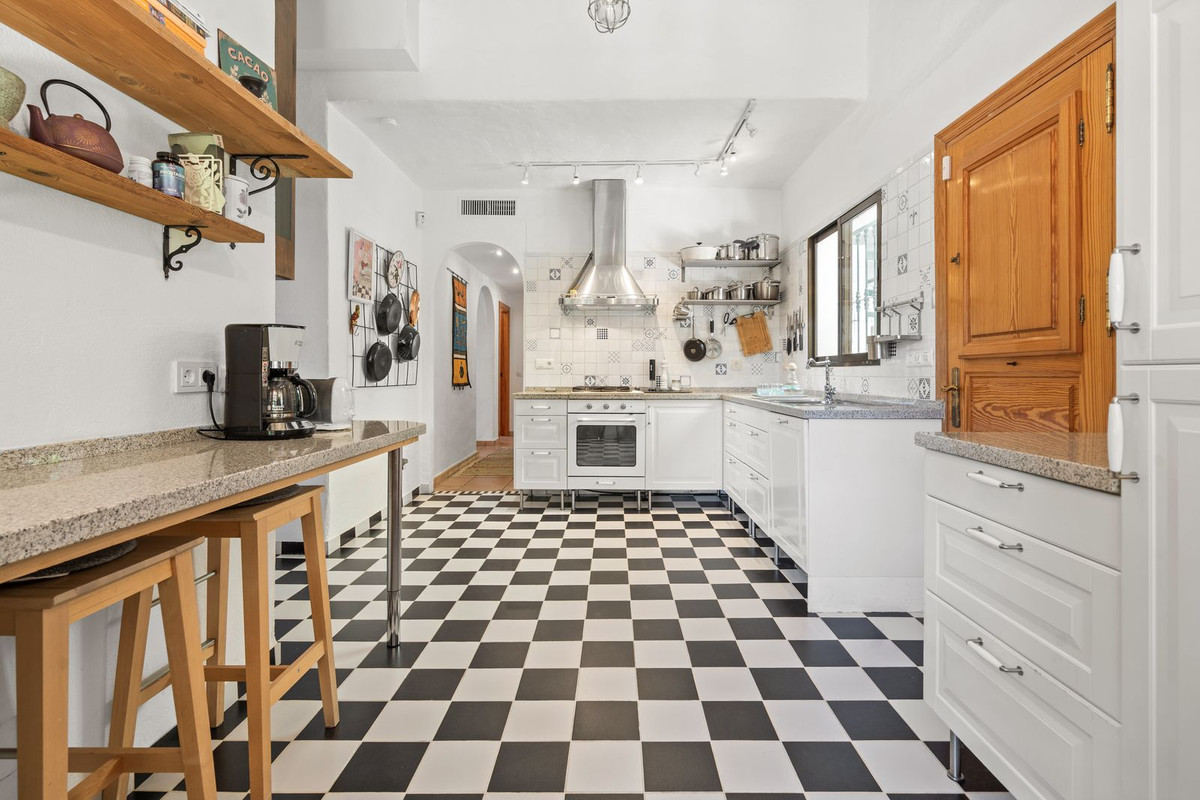 Cette villa de plain-pied, à l'agencement pratique et fluide, conserve le charme authentique d'une maison de campagne. Des détails tels que des plafonds voûtés et à poutres apparentes, des pierres rustiques et du fer forgé décoratif apportent chaleur et personnalité. Une suite d'invités séparée, accessible par un escalier extérieur depuis le patio, assure l'intimité des visiteurs. L'élégante allée, les oliviers, les points d'eau et le verger créent l'atmosphère d'une finca miniature.