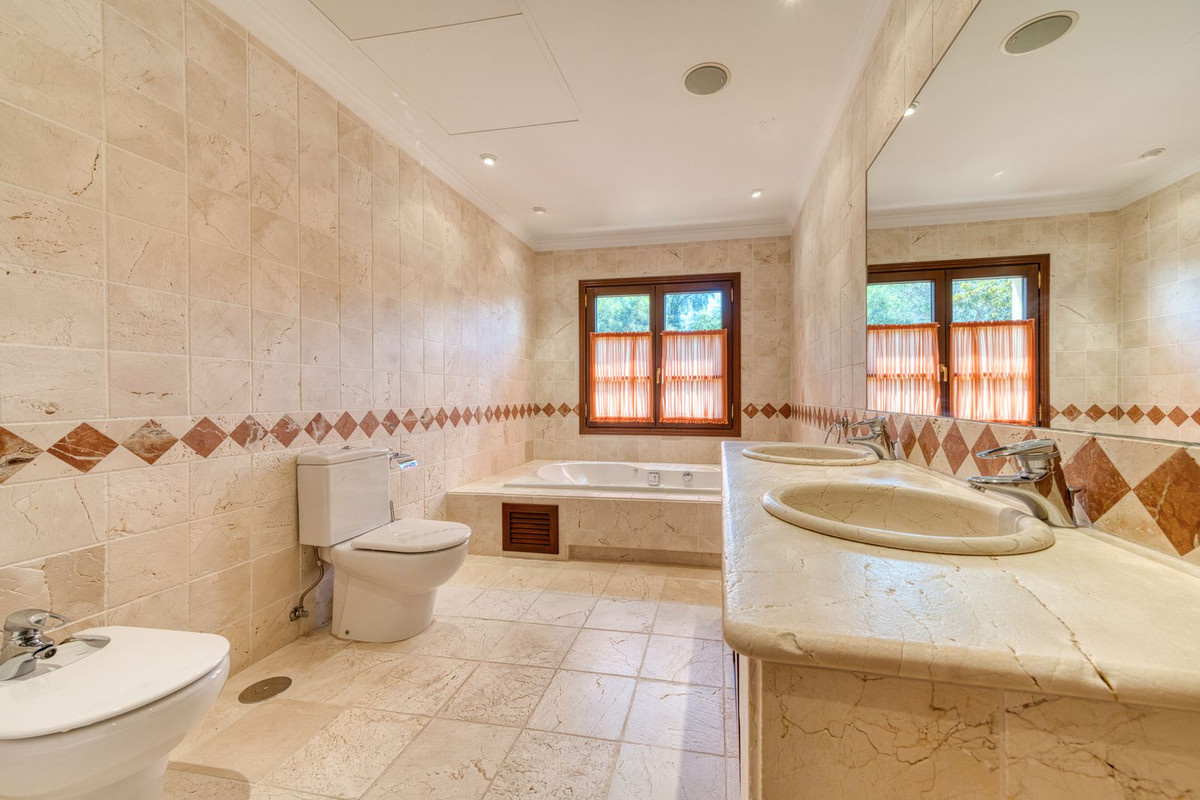 Plongez dans un luxe intemporel avec cette magnifique villa de six chambres, à l'intimité absolue, située dans l'un des domaines privés et sécurisés les plus prestigieux d'Europe. Implantée sur un vaste terrain de 6 173 m², cette impressionnante résidence offre une intimité totale, une vue imprenable sur la Méditerranée et les montagnes environnantes, et plus de 970 m² d'espace de vie raffiné. Une allée majestueuse mène à l'entrée principale et à un garage souterrain pour trois voitures. À l'intérieur, un magnifique atrium central baigne la maison de lumière naturelle, reliant harmonieusement la cuisine entièrement équipée, la salle à manger formelle et le salon en contrebas, conçu pour des réceptions élégantes et une vie de famille décontractée. Le niveau principal comprend trois suites spacieuses, tandis qu'au niveau inférieur, la maison se transforme en un véritable havre de paix privé, avec un élégant salon-bar, une seconde cuisine, une salle de jeux, une salle de sport, un sauna, un hammam et trois suites supplémentaires avec accès direct au jardin.
