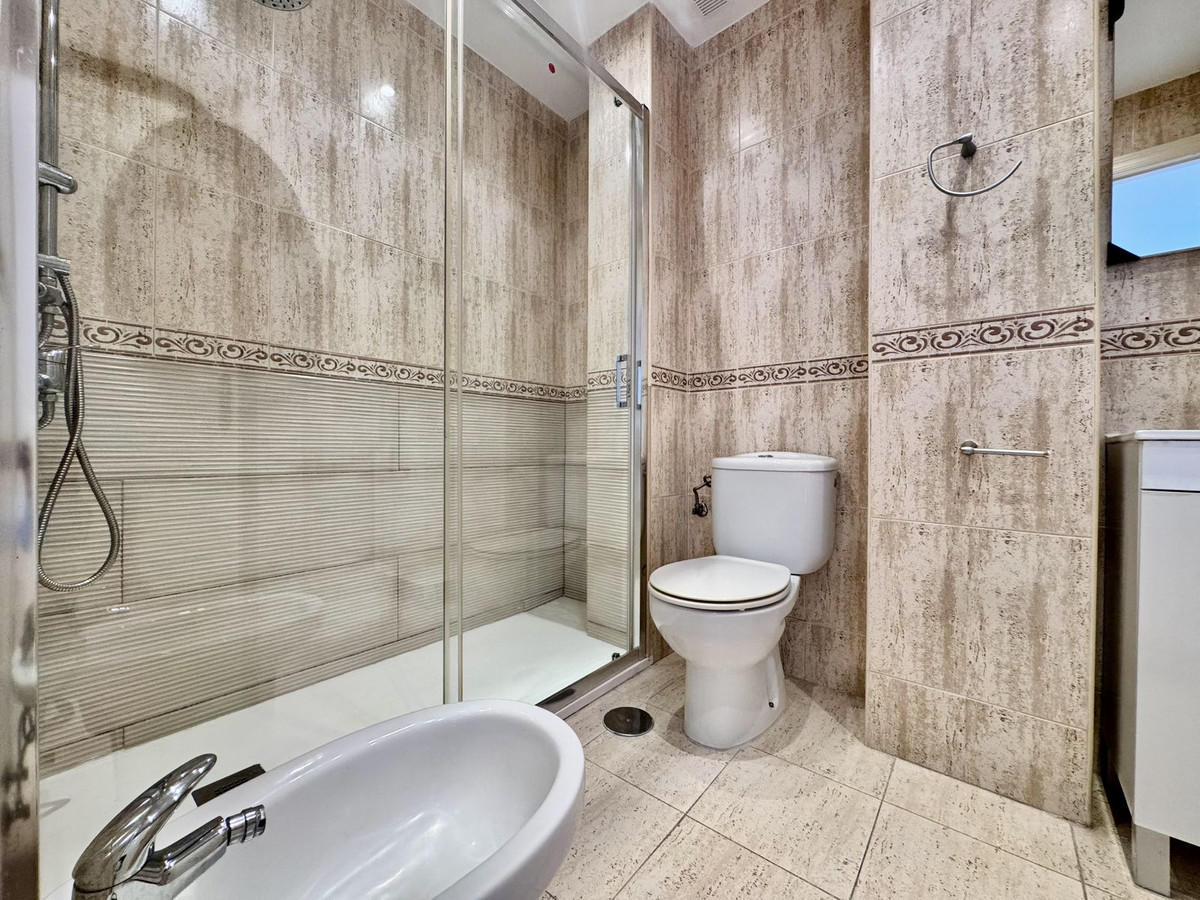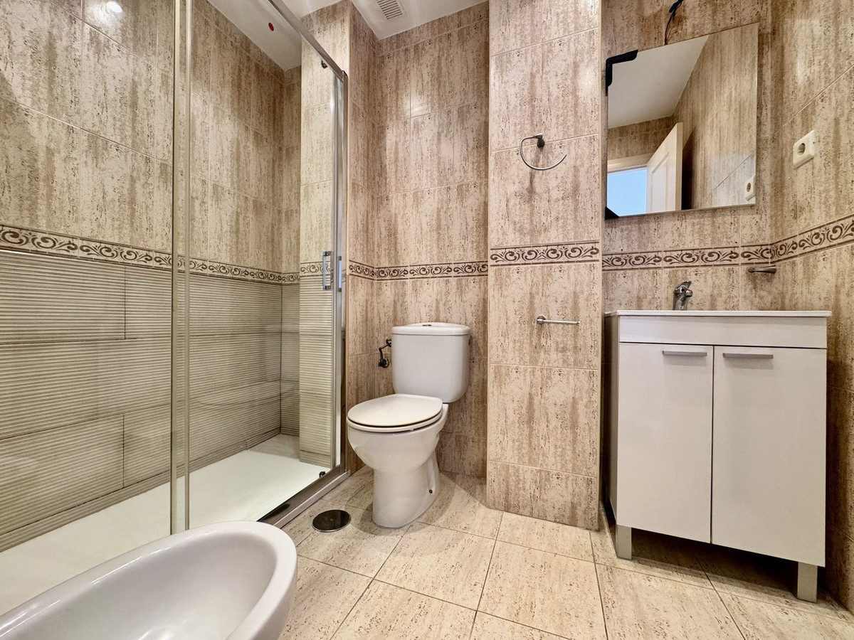 L'aménagement intérieur comprend deux chambres, deux salles de bain complètes, un salon-salle à manger spacieux et lumineux, ainsi qu'une grande cuisine indépendante au mobilier soigné. Toutes les fenêtres sont équipées de double vitrage Climalit, garantissant une isolation thermique et acoustique optimale. De plus, la propriété bénéficie d'une excellente orientation solaire, offrant une lumière naturelle toute la journée.