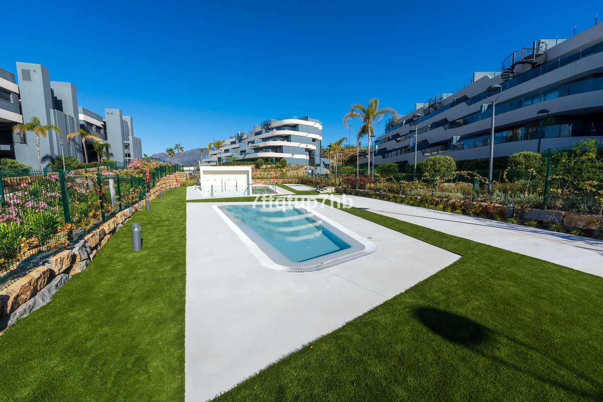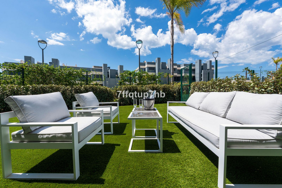 Cet appartement de trois chambres présente un design ouvert, intégrant harmonieusement une cuisine moderne entièrement équipée et le séjour. Il s'ouvre sur une spectaculaire terrasse exposée plein sud et un jardin privé de 80 m², idéal pour profiter du soleil infini qui caractérise la Costa del Sol.