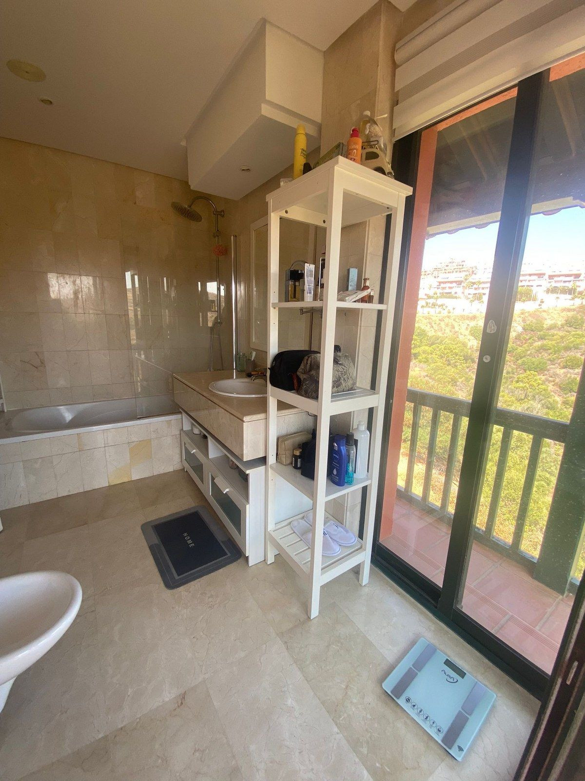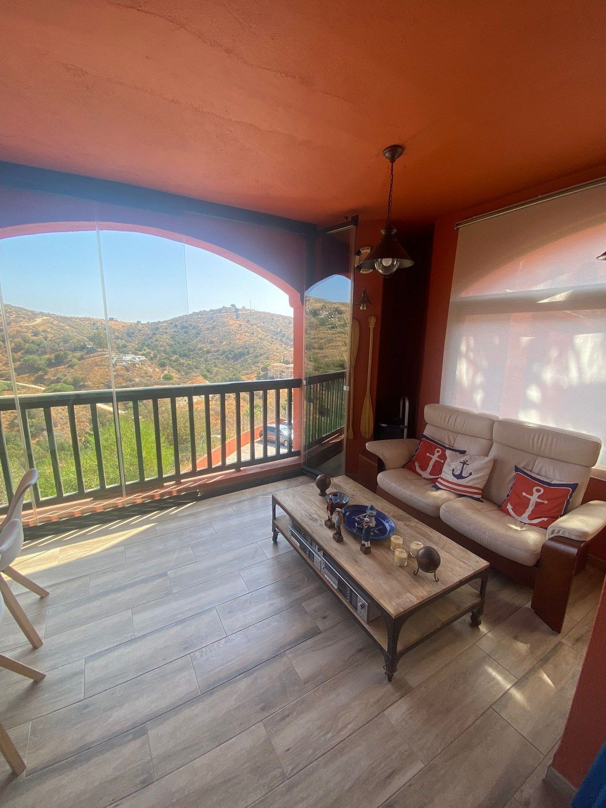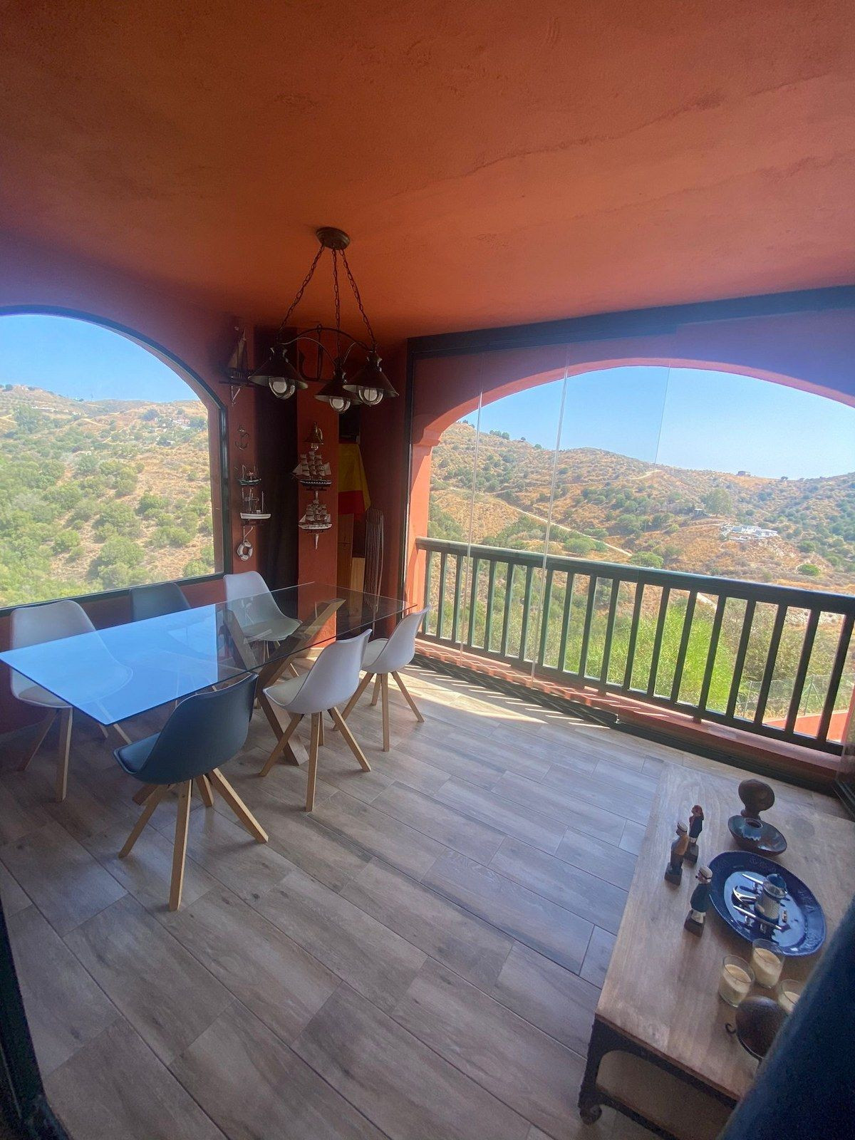 Entrée privée au rez-de-chaussée, vous disposez d'un WC invités, d'une cuisine spacieuse avec buanderie séparée, d'une 3ème chambre avec balcon privé, d'un grand salon/salle à manger qui donne sur la grande terrasse couverte avec des baies vitrées pliantes intégrées, ce qui permet de dîner sur la terrasse pendant les mois d'hiver également, d'un débarras privé caché sur la terrasse.