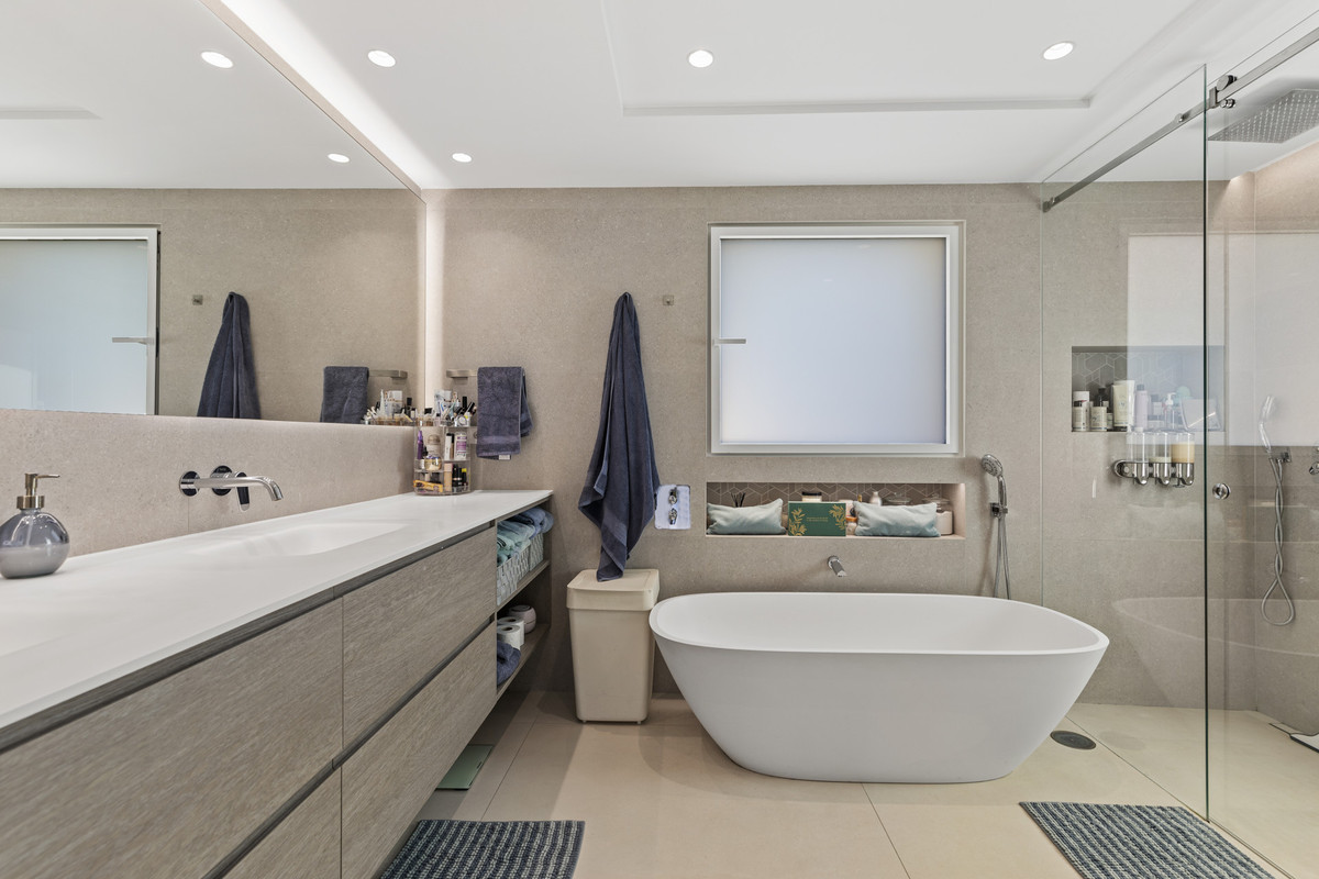 Conçue pour un style de vie moderne, la propriété dispose de quatre chambres spacieuses et de quatre salles de bain et d'un WC. Chacune dispose de sa propre salle de bain pour un confort et une intimité absolus. La suite parentale, véritable havre de paix, dispose d'une luxueuse salle de bain avec baignoire à remous, douche à l'italienne et finitions élégantes.