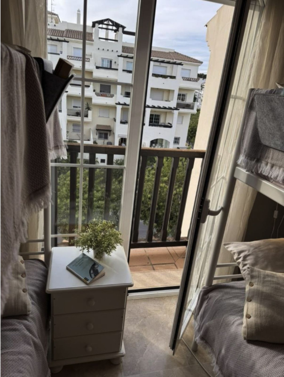 Entrez dans un hall accueillant qui dessert un spacieux salon et une cuisine entièrement équipée, tous deux ouvrant sur une terrasse privée offrant une vue panoramique sur l'océan, les montagnes (jusqu'à Marbella et l'emblématique pic de La Concha), les jardins luxuriants et les piscines étincelantes. Par temps clair, le Maroc se dessine à l'horizon. La chambre principale dispose d'une salle de bains attenante, tandis que la seconde chambre bénéficie d'un balcon à la française pour profiter du soleil de l'après-midi. De nombreuses améliorations ont été apportées, notamment des plafonniers encastrés dans les pièces principales, un buffet de cuisine intégré offrant un espace de rangement supplémentaire et une buanderie vitrée. La propriété est vendue entièrement meublée, telle que vue (avec quelques exceptions mineures), avec notamment une serrure connectée Bold pour un accès contrôlé par application, un meuble TV avec TV, Apple TV et son surround, un lave-linge/sèche-linge intégré, une machine à café, une bouilloire, un grille-pain, un mixeur et tous les ustensiles de cuisine essentiels. L'éclairage connecté Philips Hue avec détecteur de présence et hub assure l'automatisation, tandis que des crochets muraux pour vélos offrent un rangement pratique.