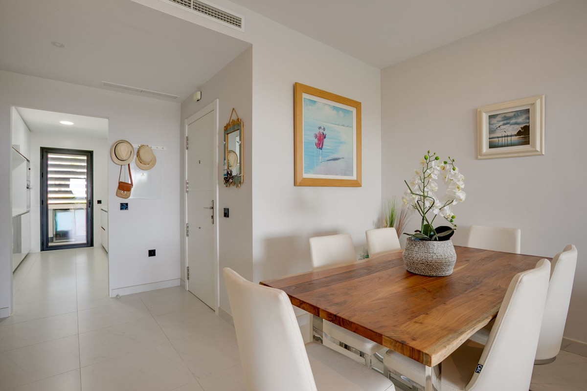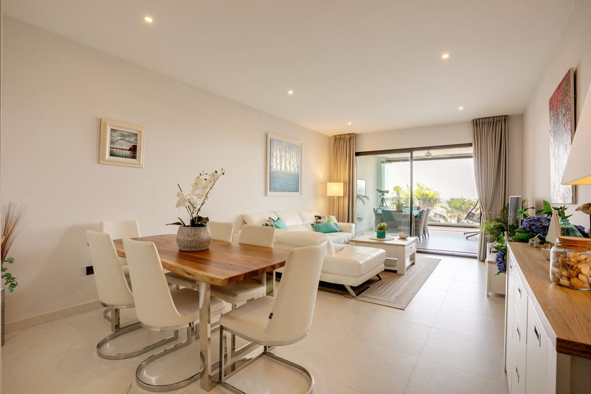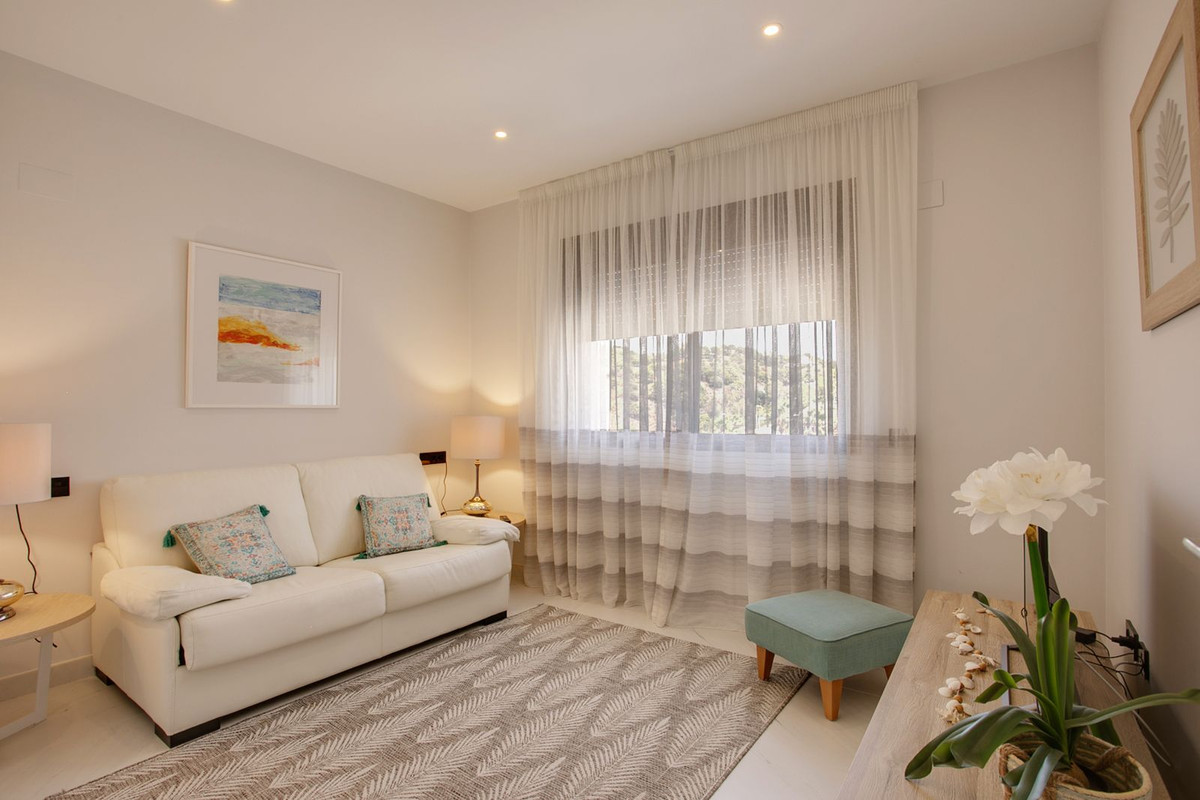 Dès l'entrée, vous serez accueilli par un magnifique séjour avec une cuisine semi-ouverte entièrement équipée. L'espace s'ouvre harmonieusement sur une grande terrasse couverte, fermée par des rideaux de verre, vous permettant de profiter pleinement de la vie en plein air toute l'année. De là, vous profiterez d'une vue panoramique sur la mer Méditerranée, les luxuriants jardins communs, les piscines et les majestueuses montagnes d'Estepona. Cette magnifique propriété, située en bout de parcelle et sans vis-à-vis, est située dans un immeuble de seulement 5 logements.