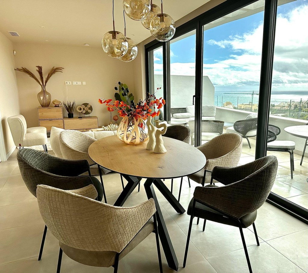 Penthouse neuf de style moderne à El Higueron, Fuengirola. Il comprend deux chambres, une salle de bain, une cuisine ouverte, un salon et une superbe terrasse avec vue panoramique sur la mer. Vendu meublé avec des meubles de qualité, il comprend une place de parking extérieure, une place de parking souterraine et un débarras. Climatisation réversible par aérothermie, stores électriques dans le salon, variateurs d'intensité dans toutes les pièces, connexion TV et internet dans le salon et les chambres, chauffage au sol, carrelage spécial et douche à effet pluie dans la salle de bain. Résidence sécurisée avec piscines et commodités. La plage est à 15 minutes à pied.