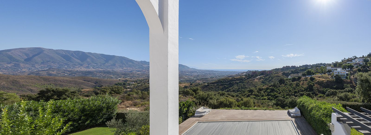 Découvrez la maison de vos rêves dans les collines d'Elviria Alta / La Mairena, où des vues à couper le souffle sur la mer et la montagne rencontrent la sérénité de la nature et l'élégance de la vie méditerranéenne.