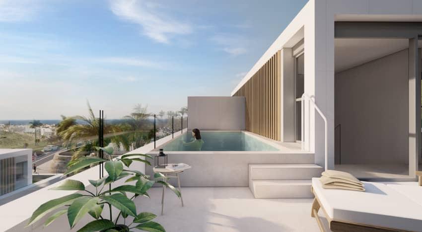 Pour ce nouveau développement exclusif de 10 villas jumelées à Estepona à partir de 730 000 euros (hors TVA) incl. 2 places de parking