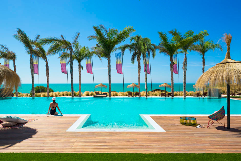 Uitzicht: zee, strand, panoramisch, tuin, zwembad