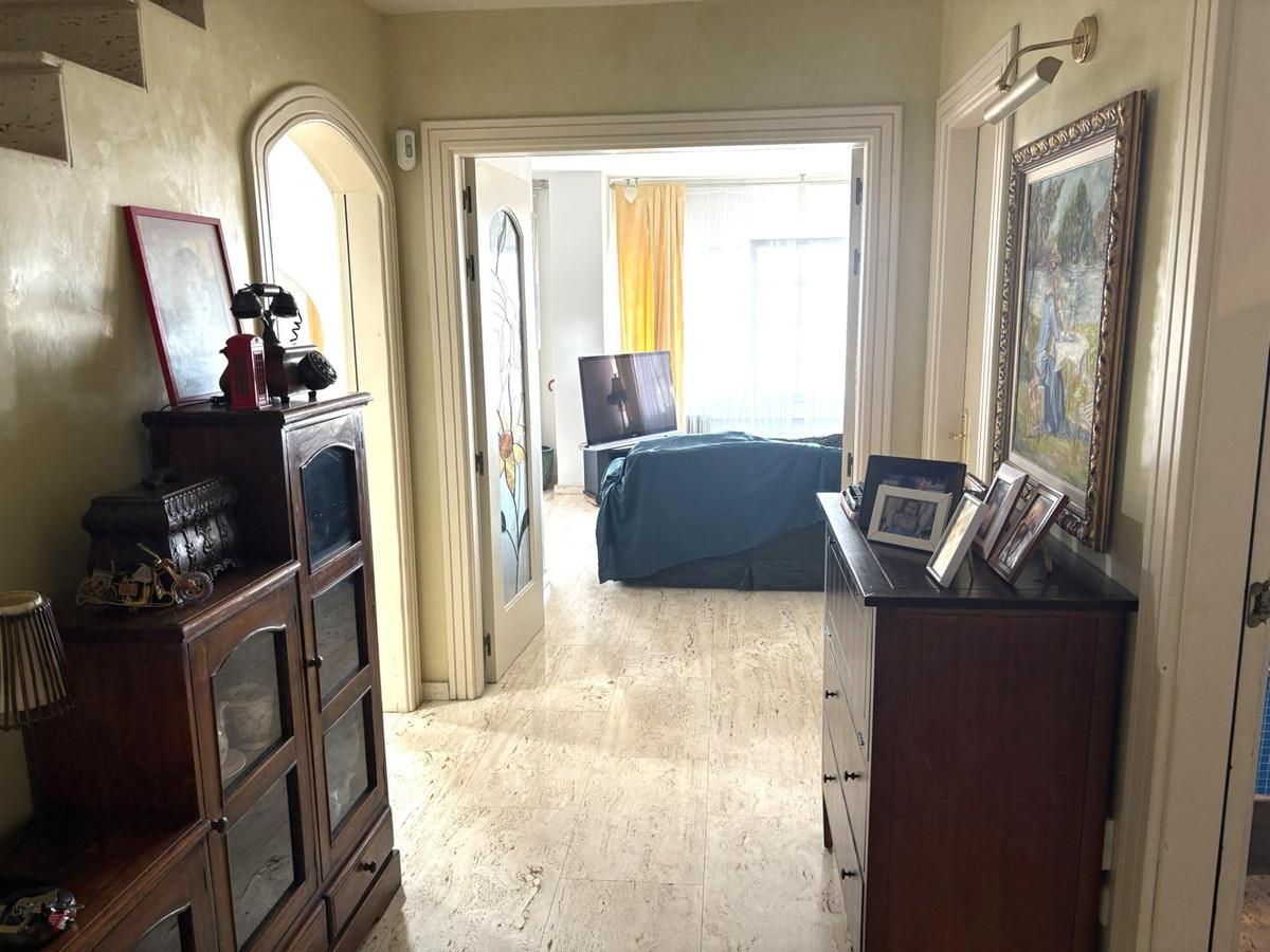 La propriété est répartie sur deux étages. L'étage supérieur comprend trois chambres lumineuses et spacieuses, idéales pour le repos et le confort. Au rez-de-chaussée, vous trouverez un grand hall d'entrée élégant, sublimé par un sol en travertin romain qui lui confère une touche classique et raffinée.