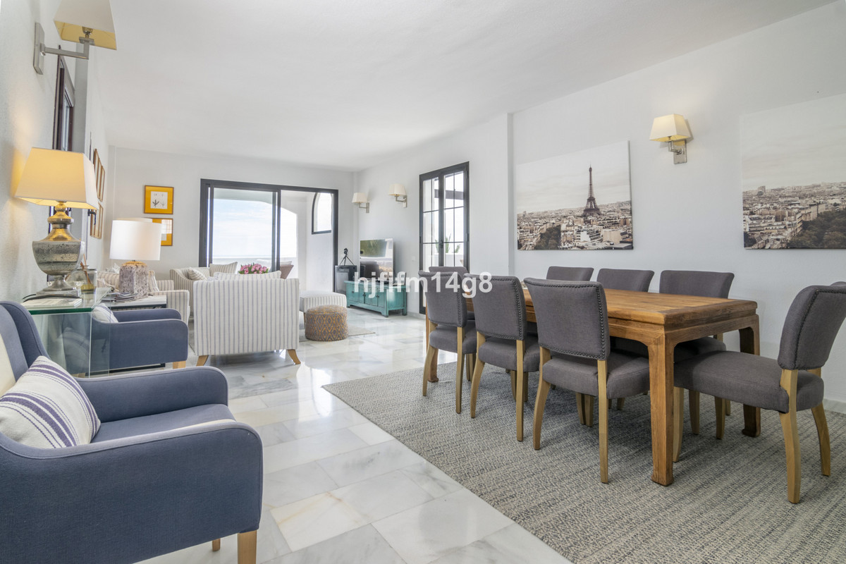 Introducing a rare opportunity to purchase a spacious four-bedroom penthouse in the sought-after community of Aldea Blanca, offering spectacular sea views and an unbeatable location. Aldea Blanca is one of Nueva Andalucía’s most desirable residential complexes, situated just steps from Centro Plaza, close to all amenities, and within walking distance of Puerto Banús and the beaches.