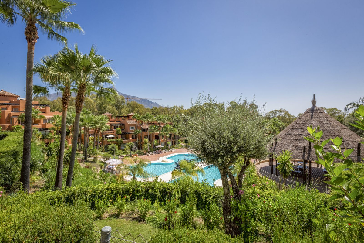 Set in one of Nueva Andalucia’s green communities with tropical gardens, a lake, and two pools, this southeast-facing ground-floor apartment is made for easy indoor-outdoor living.