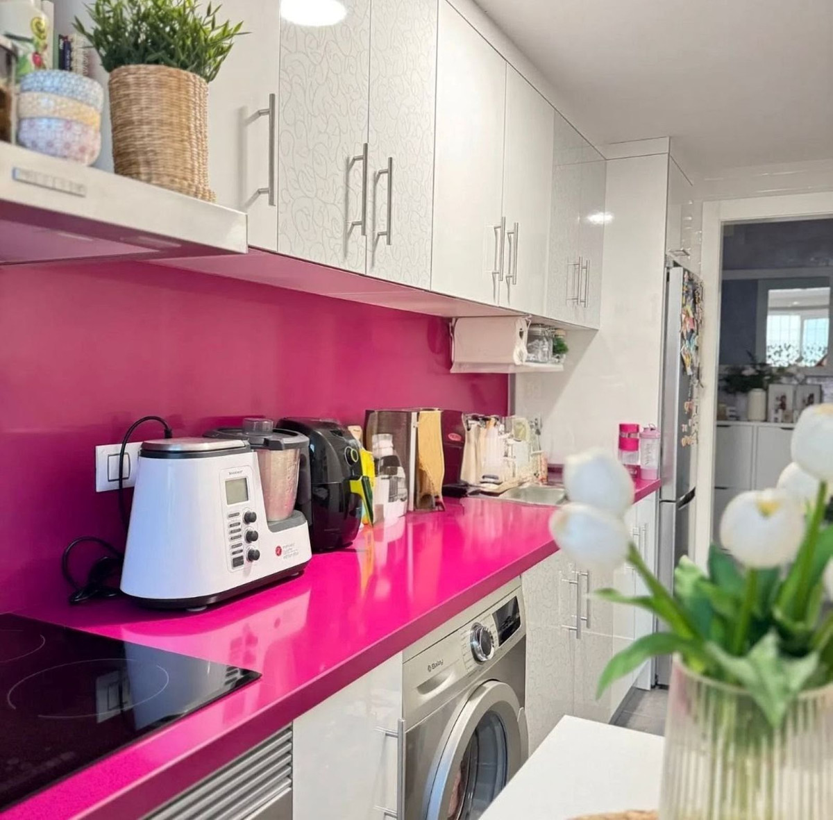 La chambre principale dispose d'un dressing sur mesure, tandis que la salle de bains, à la fois élégante et fonctionnelle, est revêtue de carrelage en porcelaine haut de gamme. La cuisine est équipée d'un plan de travail en marbre Silestone, idéal pour ceux qui apprécient à la fois le style et la praticité.