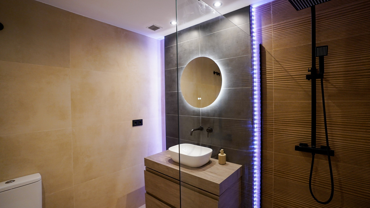 L'appartement dispose de deux chambres spacieuses et de deux salles de bains modernes et élégantes, toutes récemment rénovées selon les normes les plus élevées. Le salon et la salle à manger ouverts s'ouvrent sur une terrasse privée couverte avec vue paisible sur le jardin et la piscine, idéale pour dîner en plein air ou se détendre au soleil. Le double vitrage de haute qualité, la climatisation et un système d'alarme moderne assurent confort et sécurité tout au long de l'année, tandis que les placards intégrés offrent de nombreux rangements.