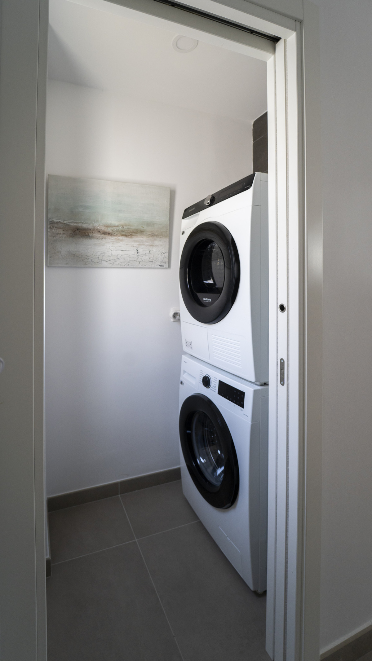 Le rez-de-chaussée dispose d'un spacieux séjour ouvrant directement sur une terrasse privée, idéale pour se détendre ou recevoir des invités. La cuisine contemporaine est entièrement intégrée à l'espace de vie, et une buanderie séparée équipée d'un lave-linge et d'un sèche-linge est également à votre disposition pour plus de confort. La maison offre trois chambres et deux salles de bain, conçues pour accueillir confortablement les familles, les couples ou les groupes.
