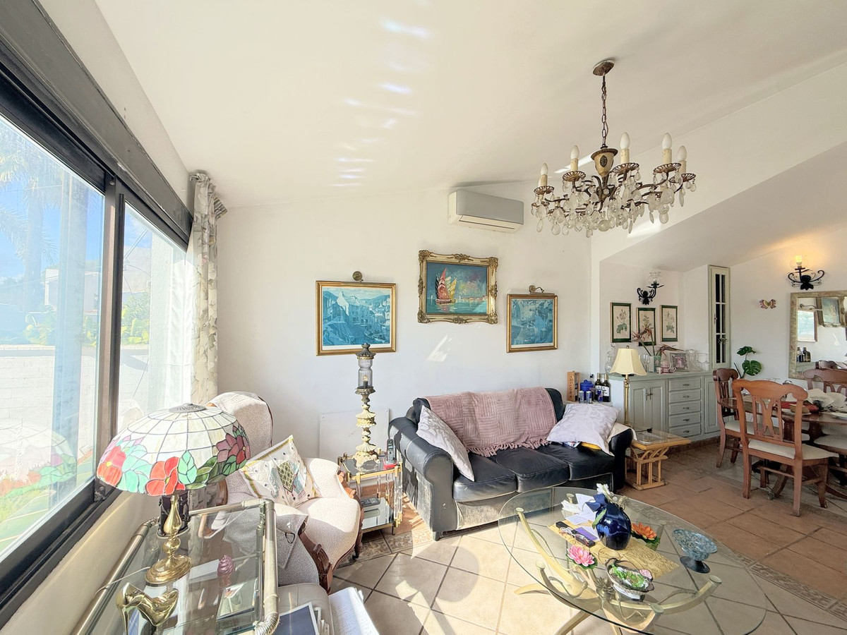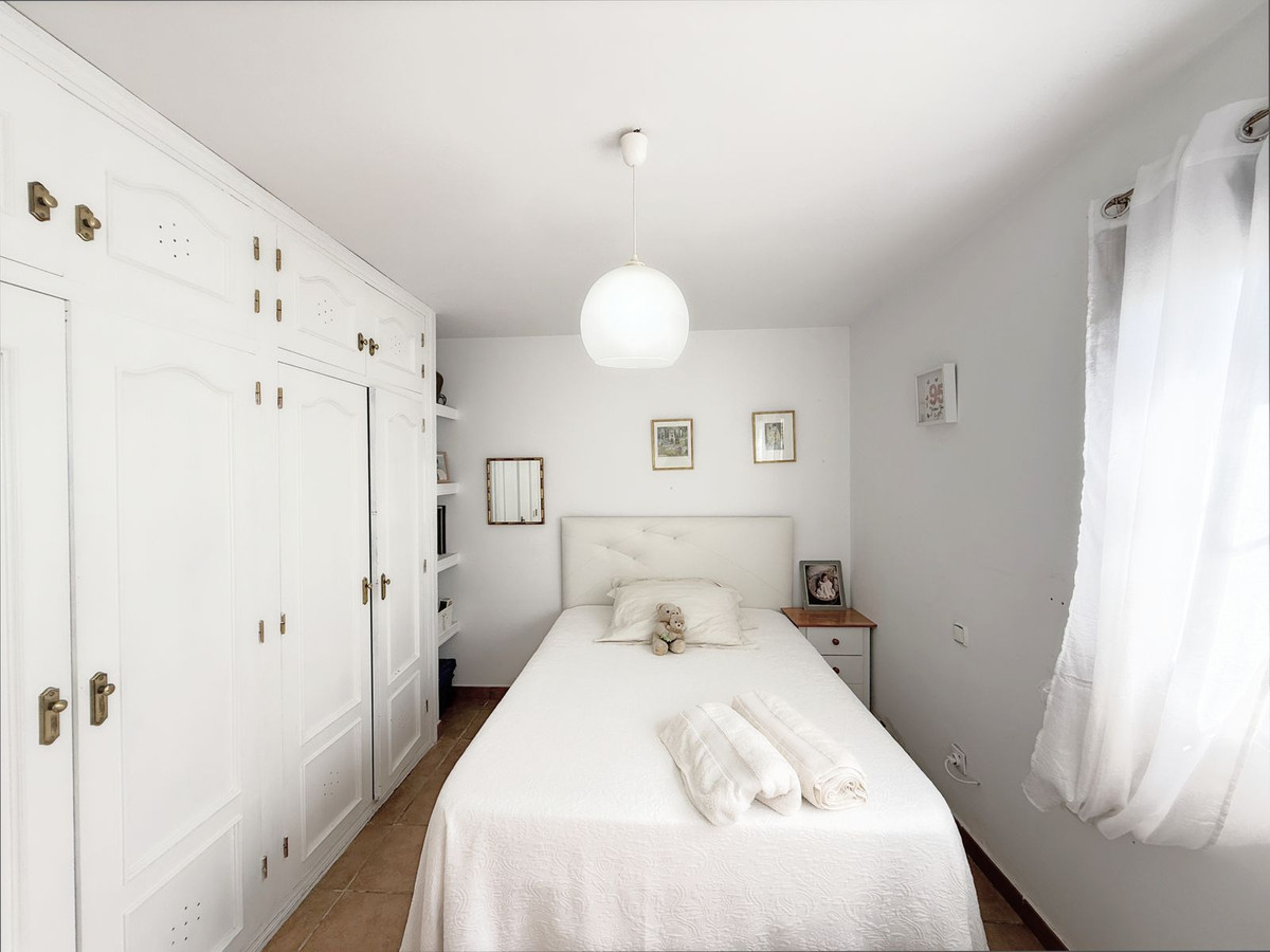 La propriété est répartie sur deux niveaux. Dès l'entrée, un charmant patio vous accueille et mène au rez-de-chaussée, qui comprend un salon lumineux, une cuisine indépendante et une terrasse offrant une agréable vue sur la mer – idéale pour se détendre et profiter du calme environnant.