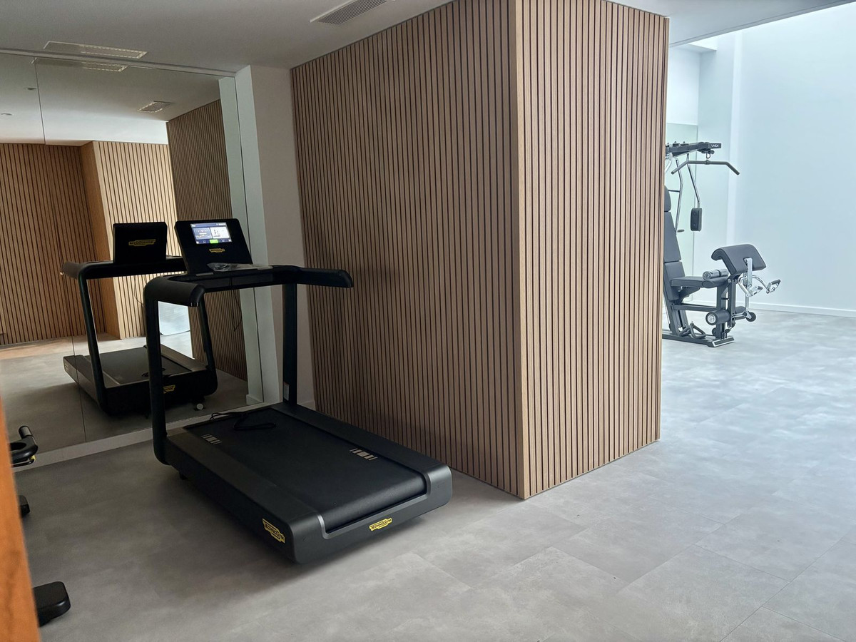 L'appartement comprend une place de parking en sous-sol et un cellier. L'immeuble dispose également d'une salle de sport au rez-de-chaussée, baignée de lumière naturelle grâce aux puits de lumière du toit, à la disposition des résidents.