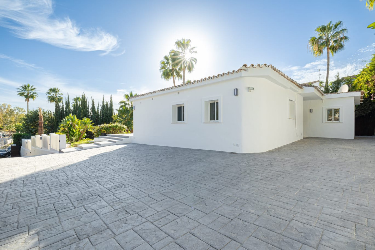 Cette magnifique villa, récemment rénovée, est située sur un vaste terrain, dans un quartier très calme et privé d'Estepona. À quelques minutes en voiture, vous trouverez tout ce dont vous avez besoin : de superbes plages, des promenades en bord de mer et tous les charmants villages espagnols de la Costa del Sol. Orientée plein sud, elle bénéficie d'une luminosité exceptionnelle tout au long de la journée, et son agencement offre une vue imprenable sur la piscine, les environs et les jardins tropicaux.