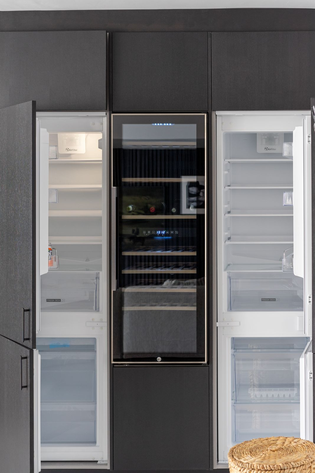 Cuisine entièrement équipée : cave à vin, réfrigérateur-congélateur double, lave-vaisselle, machine à café