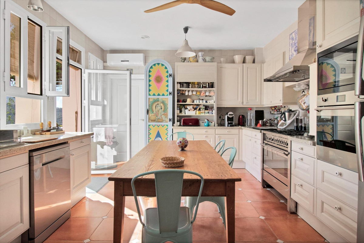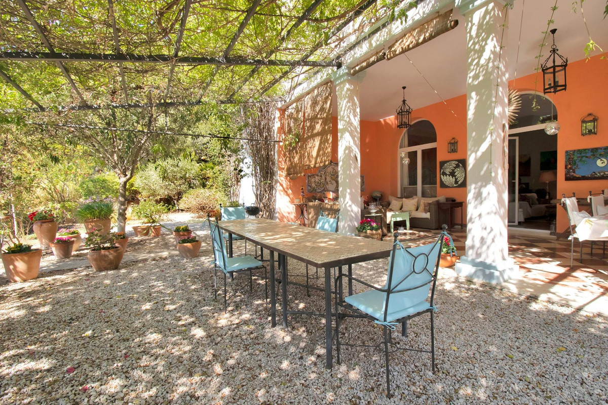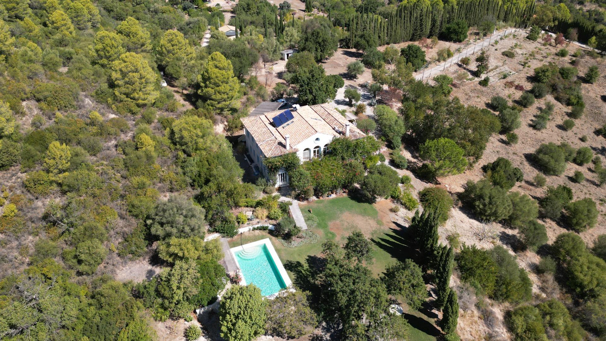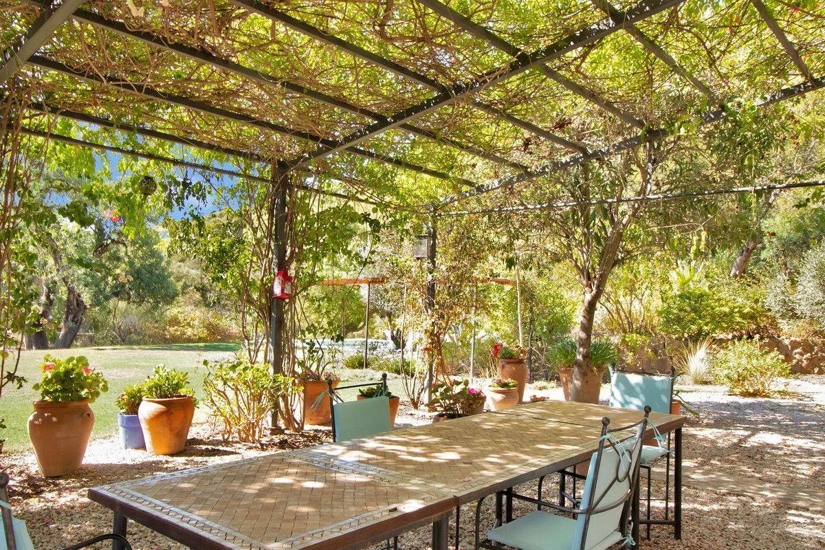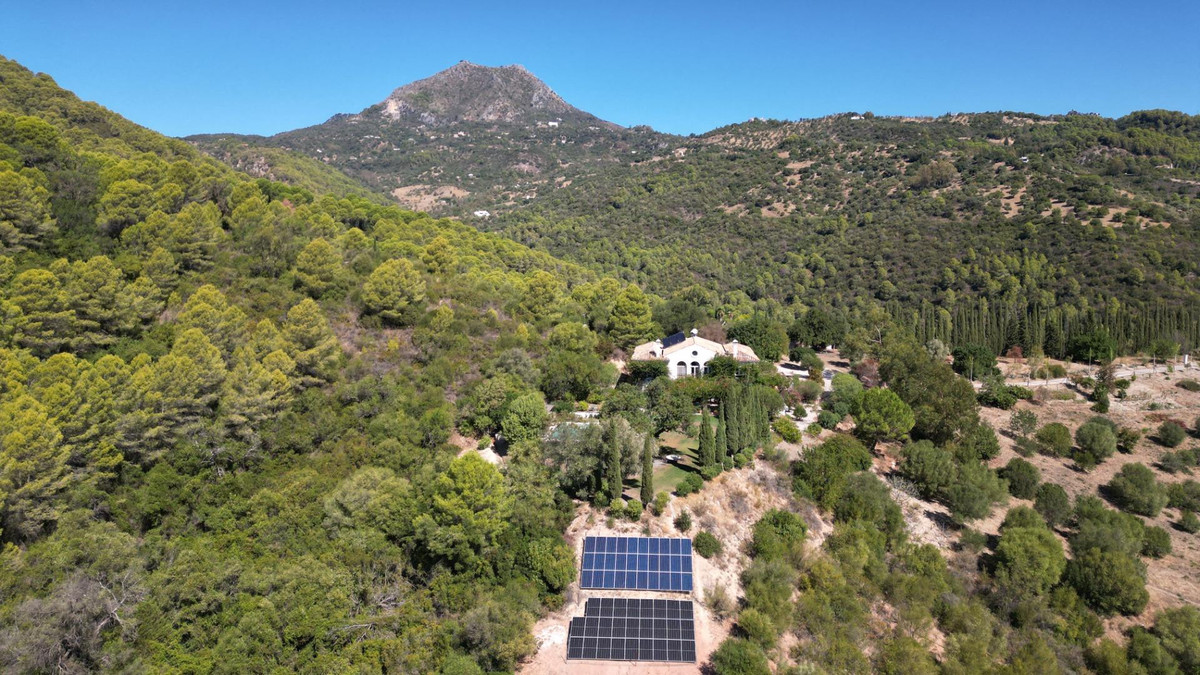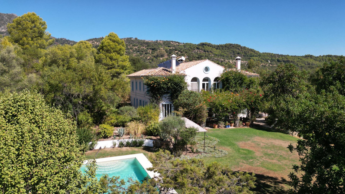 Une maison de campagne unique, nichée dans un écrin de verdure luxuriante, entourée de plantes vivaces et offrant une vue imprenable sur l'horizon. Unique par son esthétique, qui évoque une villa toscane, elle est conçue pour la vie de famille, avec de vastes espaces baignés de lumière où intérieur et extérieur se fondent harmonieusement, où la lumière et le paysage sont les maîtres mots. Unique également par sa modernité et son autonomie énergétique, cette maison offre un confort exceptionnel en toute saison. Chauffage au sol, climatisation… Ces équipements sont assurés par une importante installation de panneaux solaires de plus de 56 m² (stratégiquement placée et invisible de l'extérieur), une installation solaire de 24 kW, deux convertisseurs de 10 kW et une batterie de 20 kW, ainsi qu'une borne de recharge pour véhicule électrique. De plus, la propriété bénéficie d'un approvisionnement en eau par puits, la région étant riche en eau. Une rivière coule à proximité, offrant la possibilité de se baigner en été. Construite en 2000, la maison est orientée plein sud. La maison comprend sept chambres avec salles de bains privatives et plusieurs espaces polyvalents (bureau, atelier, bibliothèque, etc.). Elle est entourée d'un vaste jardin luxuriant, d'une grande pelouse et d'une charmante piscine avec de larges terrasses ensoleillées et un bain de glace pour les plus courageux. À l'arrière, on trouve un grand potager et un poulailler. Une allée privée, bordée de cyprès, mène à la maison et offre un grand parking. La porte principale s'ouvre sur un hall d'entrée lumineux qui dessert le salon avec de grandes portes vitrées. Attenante, une généreuse terrasse couverte se transforme en pièce à vivre en été. Une salle à manger séparée communique avec la cuisine allemande SieMatic entièrement équipée, ainsi qu'avec un cellier comprenant trois réfrigérateurs et un congélateur. La cuisine et la salle à manger s'ouvrent sur une terrasse exposée à l'est, aménagée avec une cuisine d'été. La vue sur la Sierra Crestellina y est à couper le souffle. L'autre aile du rez-de-chaussée abrite une bibliothèque ou une salle de télévision, entièrement équipée d'étagères. On y trouve également une grande chambre d'amis avec cheminée, placards intégrés et salle de bains privative. Cette chambre donne sur le jardin. Au premier étage se trouve un palier spacieux pouvant servir de salon supplémentaire ou d'atelier d'artiste. La grande suite parentale, avec son plafond mansardé, comprend un dressing avec puits de lumière et une salle de bains privative. Les fenêtres offrent une vue sur les jardins et la profusion de fleurs qui ornent la terrasse couverte du rez-de-chaussée. La suite parentale communique avec une autre chambre dotée d'une salle de bains. Cette dernière peut servir d'annexe à la suite principale, mais est également accessible depuis le palier et peut être utilisée comme chambre indépendante. À ce même étage se trouvent également un grand bureau (ou chambre supplémentaire) avec étagères intégrées et, de l'autre côté du palier, deux autres chambres avec salle de bains privative.Le rez-de-jardin, d'une superficie de plus de 300 m², comprend une buanderie, un grand atelier/studio, une cave, un débarras et un local technique. À l'est se trouve un appartement de service avec cuisine-séjour, chambre, salle de bains et terrasse et jardin privatifs. Une autre grande suite d'invités, avec salle de bains et kitchenette, s'ouvre également sur le jardin. Cette luxueuse maison de campagne à vendre en Andalousie offre de nombreux atouts : piscine extérieure, trois cheminées, arrosage automatique des jardins, parquet et sols en travertin, fenêtres à double vitrage et espace barbecue. Carrelage décoratif portugais. De vastes espaces sont aménagés pour un potager. L'eau provient d'un puits privé. Cette propriété exclusive est située à seulement 15 minutes de Gaucin, 30 minutes de la plage, 45 minutes de Marbella et Sotogrande, et à 1h30 de l'aéroport international de Malaga.