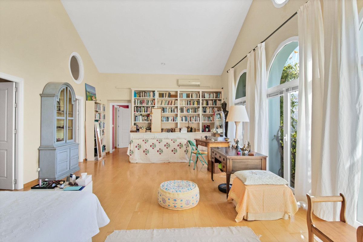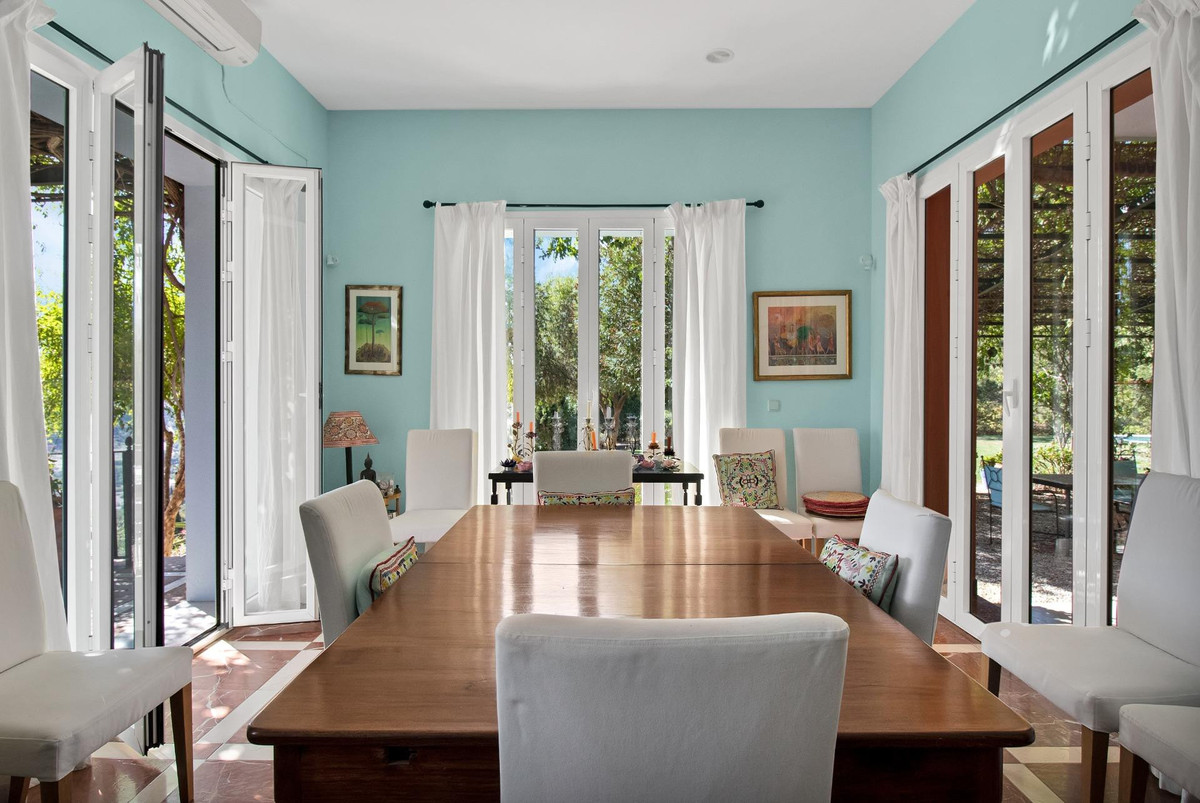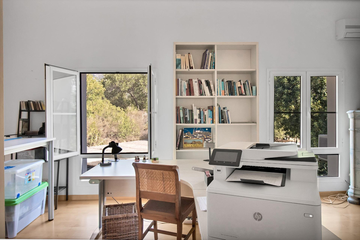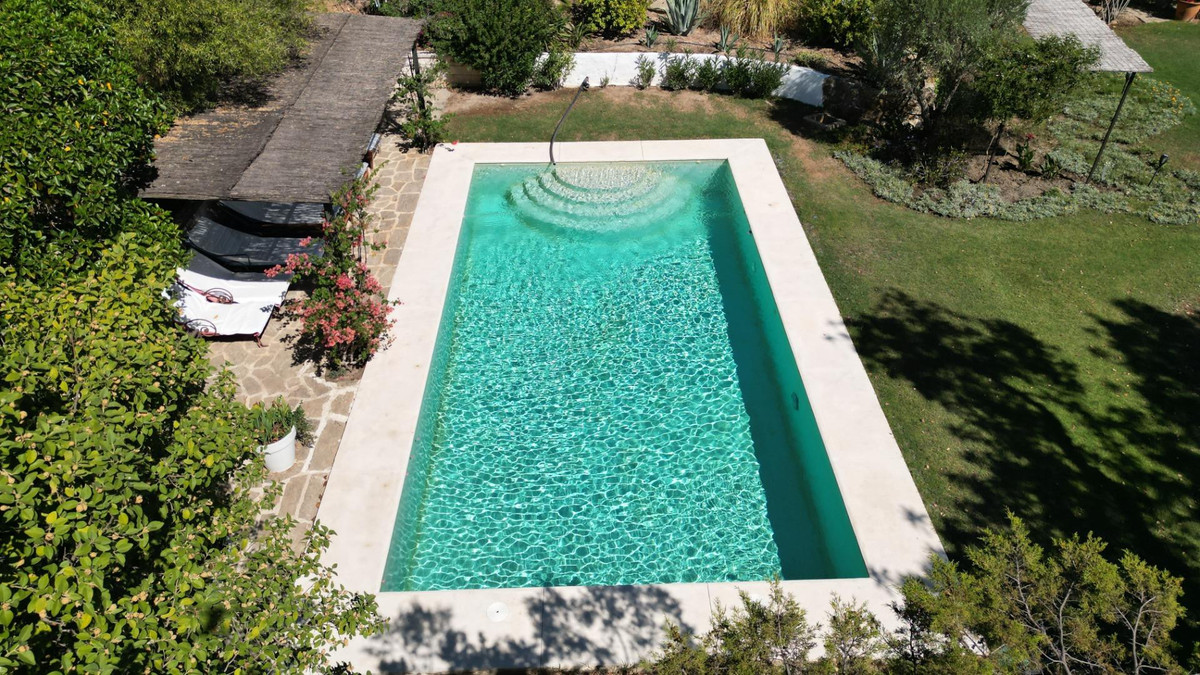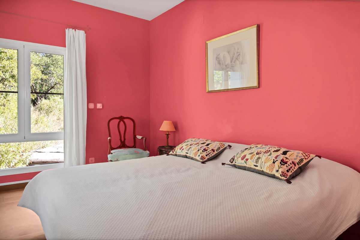 Une maison de campagne unique, nichée dans un écrin de verdure luxuriante, entourée de plantes vivaces et offrant une vue imprenable sur l'horizon. Unique par son esthétique, qui évoque une villa toscane, elle est conçue pour la vie de famille, avec de vastes espaces baignés de lumière où intérieur et extérieur se fondent harmonieusement, où la lumière et le paysage sont les maîtres mots. Unique également par sa modernité et son autonomie énergétique, cette maison offre un confort exceptionnel en toute saison. Chauffage au sol, climatisation… Ces équipements sont assurés par une importante installation de panneaux solaires de plus de 56 m² (stratégiquement placée et invisible de l'extérieur), une installation solaire de 24 kW, deux convertisseurs de 10 kW et une batterie de 20 kW, ainsi qu'une borne de recharge pour véhicule électrique. De plus, la propriété bénéficie d'un approvisionnement en eau par puits, la région étant riche en eau. Une rivière coule à proximité, offrant la possibilité de se baigner en été. Construite en 2000, la maison est orientée plein sud. La maison comprend sept chambres avec salles de bains privatives et plusieurs espaces polyvalents (bureau, atelier, bibliothèque, etc.). Elle est entourée d'un vaste jardin luxuriant, d'une grande pelouse et d'une charmante piscine avec de larges terrasses ensoleillées et un bain de glace pour les plus courageux. À l'arrière, on trouve un grand potager et un poulailler. Une allée privée, bordée de cyprès, mène à la maison et offre un grand parking. La porte principale s'ouvre sur un hall d'entrée lumineux qui dessert le salon avec de grandes portes vitrées. Attenante, une généreuse terrasse couverte se transforme en pièce à vivre en été. Une salle à manger séparée communique avec la cuisine allemande SieMatic entièrement équipée, ainsi qu'avec un cellier comprenant trois réfrigérateurs et un congélateur. La cuisine et la salle à manger s'ouvrent sur une terrasse exposée à l'est, aménagée avec une cuisine d'été. La vue sur la Sierra Crestellina y est à couper le souffle. L'autre aile du rez-de-chaussée abrite une bibliothèque ou une salle de télévision, entièrement équipée d'étagères. On y trouve également une grande chambre d'amis avec cheminée, placards intégrés et salle de bains privative. Cette chambre donne sur le jardin. Au premier étage se trouve un palier spacieux pouvant servir de salon supplémentaire ou d'atelier d'artiste. La grande suite parentale, avec son plafond mansardé, comprend un dressing avec puits de lumière et une salle de bains privative. Les fenêtres offrent une vue sur les jardins et la profusion de fleurs qui ornent la terrasse couverte du rez-de-chaussée. La suite parentale communique avec une autre chambre dotée d'une salle de bains. Cette dernière peut servir d'annexe à la suite principale, mais est également accessible depuis le palier et peut être utilisée comme chambre indépendante. À ce même étage se trouvent également un grand bureau (ou chambre supplémentaire) avec étagères intégrées et, de l'autre côté du palier, deux autres chambres avec salle de bains privative.Le rez-de-jardin, d'une superficie de plus de 300 m², comprend une buanderie, un grand atelier/studio, une cave, un débarras et un local technique. À l'est se trouve un appartement de service avec cuisine-séjour, chambre, salle de bains et terrasse et jardin privatifs. Une autre grande suite d'invités, avec salle de bains et kitchenette, s'ouvre également sur le jardin. Cette luxueuse maison de campagne à vendre en Andalousie offre de nombreux atouts : piscine extérieure, trois cheminées, arrosage automatique des jardins, parquet et sols en travertin, fenêtres à double vitrage et espace barbecue. Carrelage décoratif portugais. De vastes espaces sont aménagés pour un potager. L'eau provient d'un puits privé. Cette propriété exclusive est située à seulement 15 minutes de Gaucin, 30 minutes de la plage, 45 minutes de Marbella et Sotogrande, et à 1h30 de l'aéroport international de Malaga.