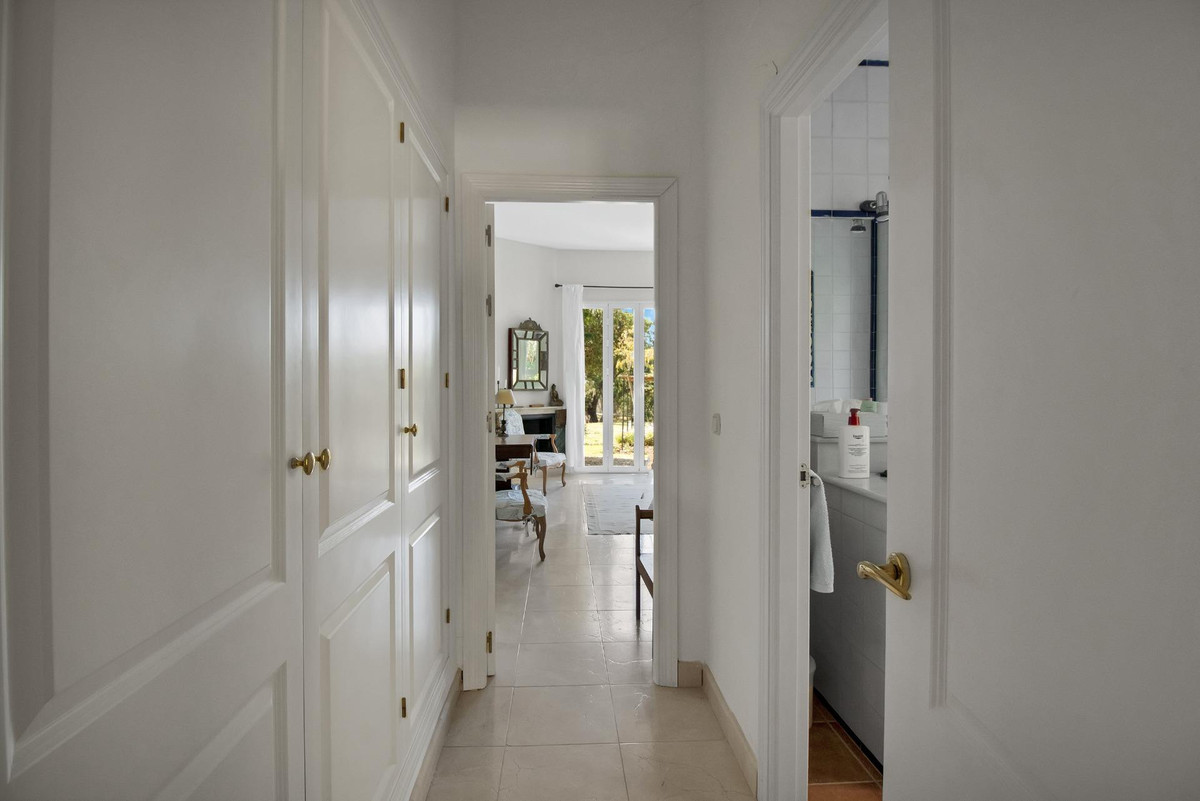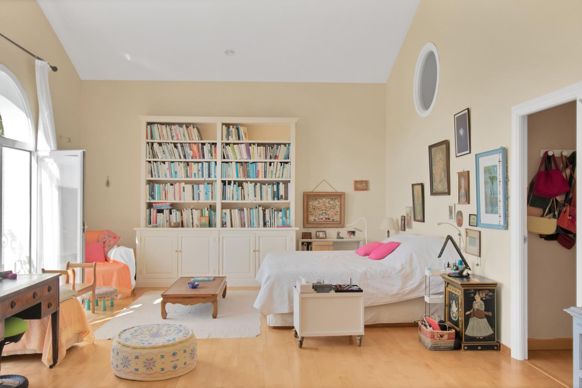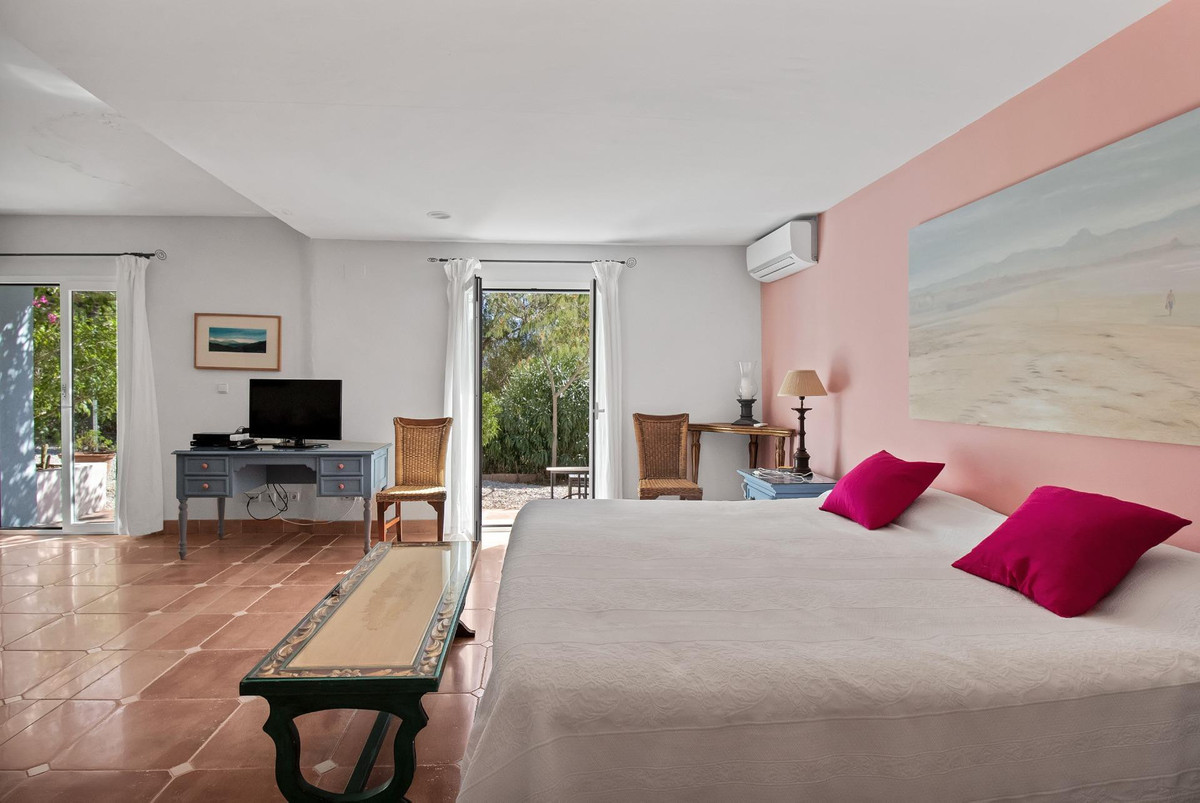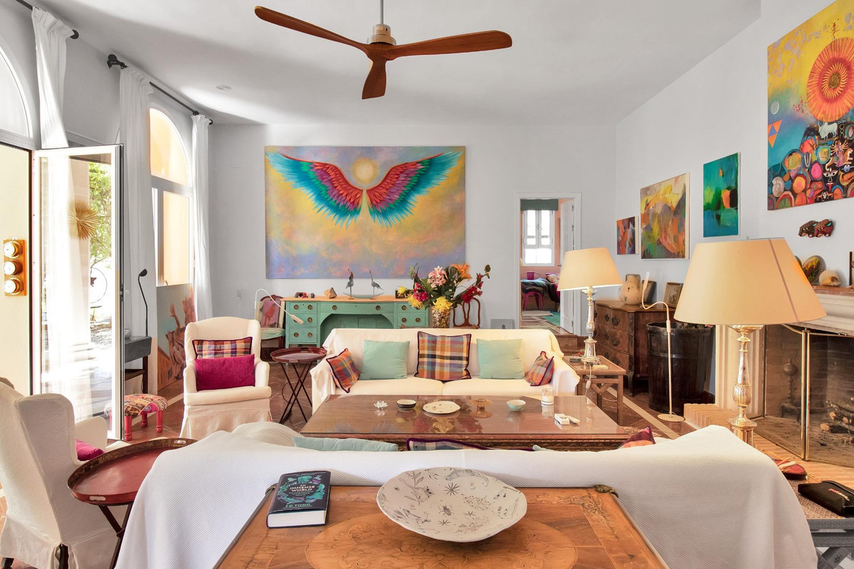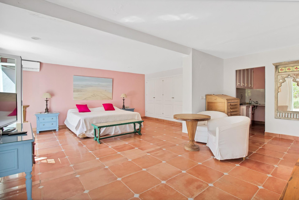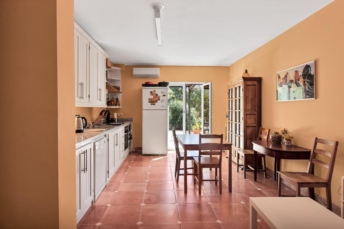 Une maison de campagne unique, nichée dans un écrin de verdure luxuriante, entourée de plantes vivaces et offrant une vue imprenable sur l'horizon. Unique par son esthétique, qui évoque une villa toscane, elle est conçue pour la vie de famille, avec de vastes espaces baignés de lumière où intérieur et extérieur se fondent harmonieusement, où la lumière et le paysage sont les maîtres mots. Unique également par sa modernité et son autonomie énergétique, cette maison offre un confort exceptionnel en toute saison. Chauffage au sol, climatisation… Ces équipements sont assurés par une importante installation de panneaux solaires de plus de 56 m² (stratégiquement placée et invisible de l'extérieur), une installation solaire de 24 kW, deux convertisseurs de 10 kW et une batterie de 20 kW, ainsi qu'une borne de recharge pour véhicule électrique. De plus, la propriété bénéficie d'un approvisionnement en eau par puits, la région étant riche en eau. Une rivière coule à proximité, offrant la possibilité de se baigner en été. Construite en 2000, la maison est orientée plein sud. La maison comprend sept chambres avec salles de bains privatives et plusieurs espaces polyvalents (bureau, atelier, bibliothèque, etc.). Elle est entourée d'un vaste jardin luxuriant, d'une grande pelouse et d'une charmante piscine avec de larges terrasses ensoleillées et un bain de glace pour les plus courageux. À l'arrière, on trouve un grand potager et un poulailler. Une allée privée, bordée de cyprès, mène à la maison et offre un grand parking. La porte principale s'ouvre sur un hall d'entrée lumineux qui dessert le salon avec de grandes portes vitrées. Attenante, une généreuse terrasse couverte se transforme en pièce à vivre en été. Une salle à manger séparée communique avec la cuisine allemande SieMatic entièrement équipée, ainsi qu'avec un cellier comprenant trois réfrigérateurs et un congélateur. La cuisine et la salle à manger s'ouvrent sur une terrasse exposée à l'est, aménagée avec une cuisine d'été. La vue sur la Sierra Crestellina y est à couper le souffle. L'autre aile du rez-de-chaussée abrite une bibliothèque ou une salle de télévision, entièrement équipée d'étagères. On y trouve également une grande chambre d'amis avec cheminée, placards intégrés et salle de bains privative. Cette chambre donne sur le jardin. Au premier étage se trouve un palier spacieux pouvant servir de salon supplémentaire ou d'atelier d'artiste. La grande suite parentale, avec son plafond mansardé, comprend un dressing avec puits de lumière et une salle de bains privative. Les fenêtres offrent une vue sur les jardins et la profusion de fleurs qui ornent la terrasse couverte du rez-de-chaussée. La suite parentale communique avec une autre chambre dotée d'une salle de bains. Cette dernière peut servir d'annexe à la suite principale, mais est également accessible depuis le palier et peut être utilisée comme chambre indépendante. À ce même étage se trouvent également un grand bureau (ou chambre supplémentaire) avec étagères intégrées et, de l'autre côté du palier, deux autres chambres avec salle de bains privative.Le rez-de-jardin, d'une superficie de plus de 300 m², comprend une buanderie, un grand atelier/studio, une cave, un débarras et un local technique. À l'est se trouve un appartement de service avec cuisine-séjour, chambre, salle de bains et terrasse et jardin privatifs. Une autre grande suite d'invités, avec salle de bains et kitchenette, s'ouvre également sur le jardin. Cette luxueuse maison de campagne à vendre en Andalousie offre de nombreux atouts : piscine extérieure, trois cheminées, arrosage automatique des jardins, parquet et sols en travertin, fenêtres à double vitrage et espace barbecue. Carrelage décoratif portugais. De vastes espaces sont aménagés pour un potager. L'eau provient d'un puits privé. Cette propriété exclusive est située à seulement 15 minutes de Gaucin, 30 minutes de la plage, 45 minutes de Marbella et Sotogrande, et à 1h30 de l'aéroport international de Malaga.