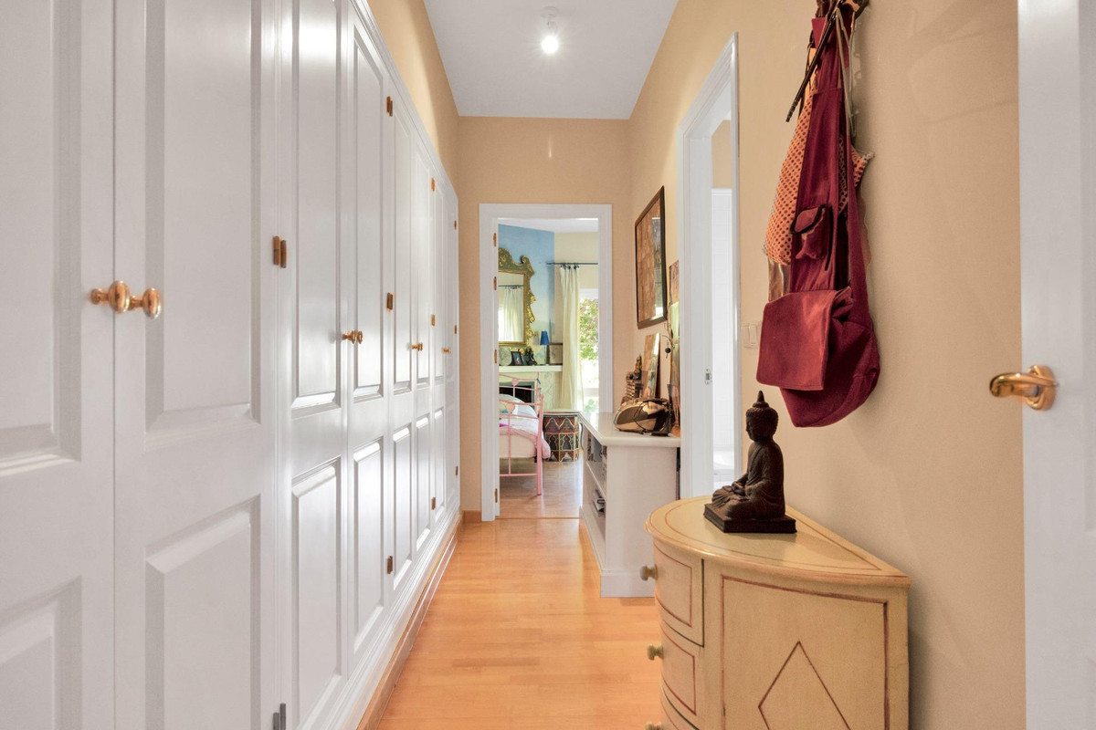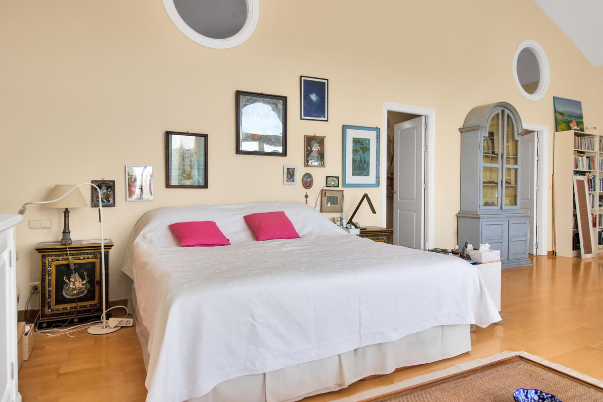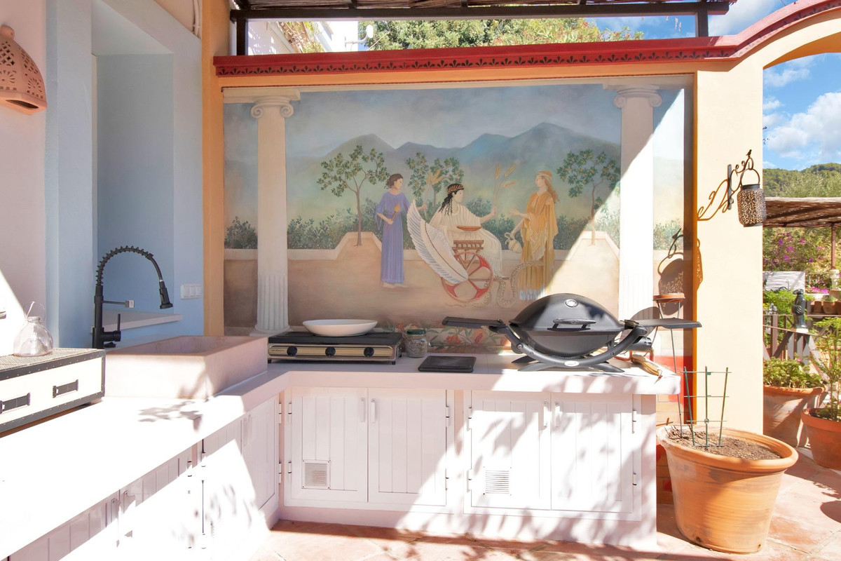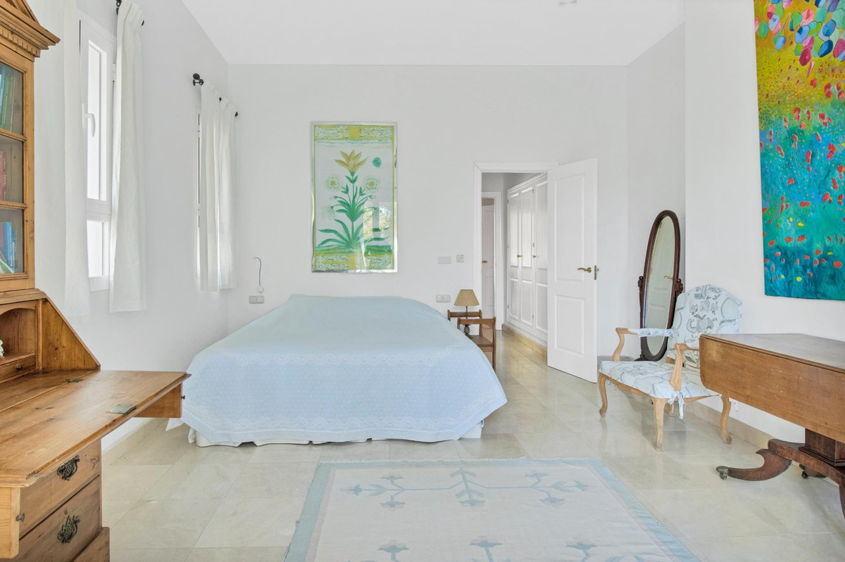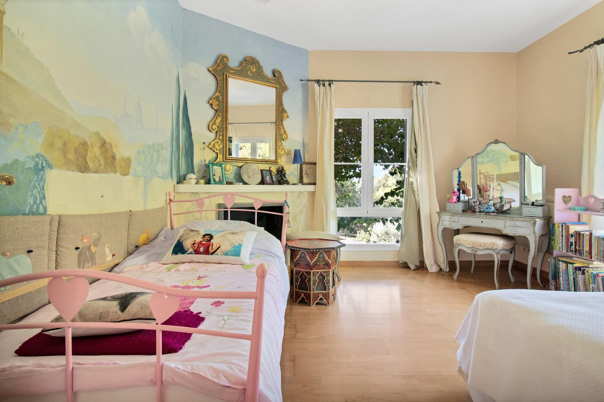 Une maison de campagne unique, nichée dans un écrin de verdure luxuriante, entourée de plantes vivaces et offrant une vue imprenable sur l'horizon. Unique par son esthétique, qui évoque une villa toscane, elle est conçue pour la vie de famille, avec de vastes espaces baignés de lumière où intérieur et extérieur se fondent harmonieusement, où la lumière et le paysage sont les maîtres mots. Unique également par sa modernité et son autonomie énergétique, cette maison offre un confort exceptionnel en toute saison. Chauffage au sol, climatisation… Ces équipements sont assurés par une importante installation de panneaux solaires de plus de 56 m² (stratégiquement placée et invisible de l'extérieur), une installation solaire de 24 kW, deux convertisseurs de 10 kW et une batterie de 20 kW, ainsi qu'une borne de recharge pour véhicule électrique. De plus, la propriété bénéficie d'un approvisionnement en eau par puits, la région étant riche en eau. Une rivière coule à proximité, offrant la possibilité de se baigner en été. Construite en 2000, la maison est orientée plein sud. La maison comprend sept chambres avec salles de bains privatives et plusieurs espaces polyvalents (bureau, atelier, bibliothèque, etc.). Elle est entourée d'un vaste jardin luxuriant, d'une grande pelouse et d'une charmante piscine avec de larges terrasses ensoleillées et un bain de glace pour les plus courageux. À l'arrière, on trouve un grand potager et un poulailler. Une allée privée, bordée de cyprès, mène à la maison et offre un grand parking. La porte principale s'ouvre sur un hall d'entrée lumineux qui dessert le salon avec de grandes portes vitrées. Attenante, une généreuse terrasse couverte se transforme en pièce à vivre en été. Une salle à manger séparée communique avec la cuisine allemande SieMatic entièrement équipée, ainsi qu'avec un cellier comprenant trois réfrigérateurs et un congélateur. La cuisine et la salle à manger s'ouvrent sur une terrasse exposée à l'est, aménagée avec une cuisine d'été. La vue sur la Sierra Crestellina y est à couper le souffle. L'autre aile du rez-de-chaussée abrite une bibliothèque ou une salle de télévision, entièrement équipée d'étagères. On y trouve également une grande chambre d'amis avec cheminée, placards intégrés et salle de bains privative. Cette chambre donne sur le jardin. Au premier étage se trouve un palier spacieux pouvant servir de salon supplémentaire ou d'atelier d'artiste. La grande suite parentale, avec son plafond mansardé, comprend un dressing avec puits de lumière et une salle de bains privative. Les fenêtres offrent une vue sur les jardins et la profusion de fleurs qui ornent la terrasse couverte du rez-de-chaussée. La suite parentale communique avec une autre chambre dotée d'une salle de bains. Cette dernière peut servir d'annexe à la suite principale, mais est également accessible depuis le palier et peut être utilisée comme chambre indépendante. À ce même étage se trouvent également un grand bureau (ou chambre supplémentaire) avec étagères intégrées et, de l'autre côté du palier, deux autres chambres avec salle de bains privative.Le rez-de-jardin, d'une superficie de plus de 300 m², comprend une buanderie, un grand atelier/studio, une cave, un débarras et un local technique. À l'est se trouve un appartement de service avec cuisine-séjour, chambre, salle de bains et terrasse et jardin privatifs. Une autre grande suite d'invités, avec salle de bains et kitchenette, s'ouvre également sur le jardin. Cette luxueuse maison de campagne à vendre en Andalousie offre de nombreux atouts : piscine extérieure, trois cheminées, arrosage automatique des jardins, parquet et sols en travertin, fenêtres à double vitrage et espace barbecue. Carrelage décoratif portugais. De vastes espaces sont aménagés pour un potager. L'eau provient d'un puits privé. Cette propriété exclusive est située à seulement 15 minutes de Gaucin, 30 minutes de la plage, 45 minutes de Marbella et Sotogrande, et à 1h30 de l'aéroport international de Malaga.