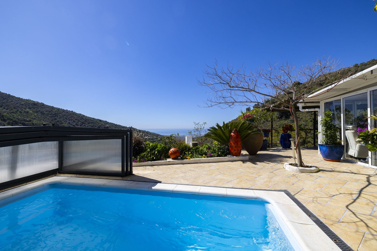 Profitez de la lumière naturelle abondante et des vues imprenables sur la montagne et la mer depuis les différentes terrasses qui entourent la propriété. Le magnifique jardin privé et la piscine chauffée couverte offrent un havre de paix et un lieu idéal pour se détendre durant les chaudes journées d'été.