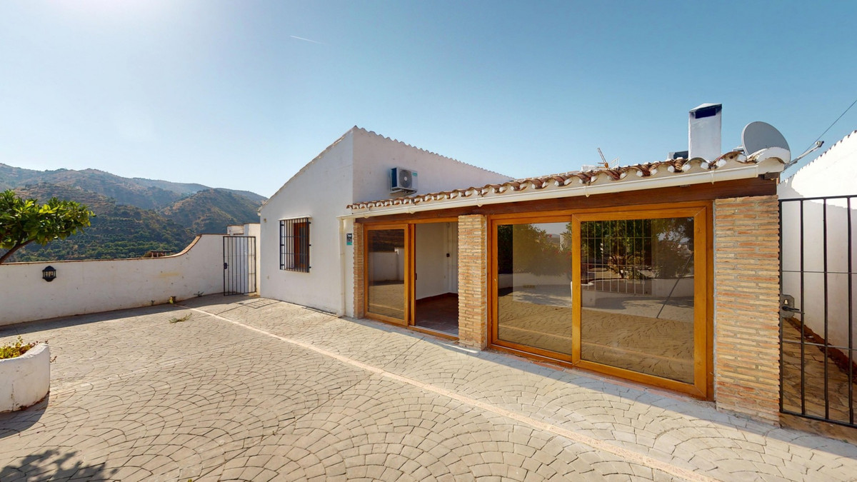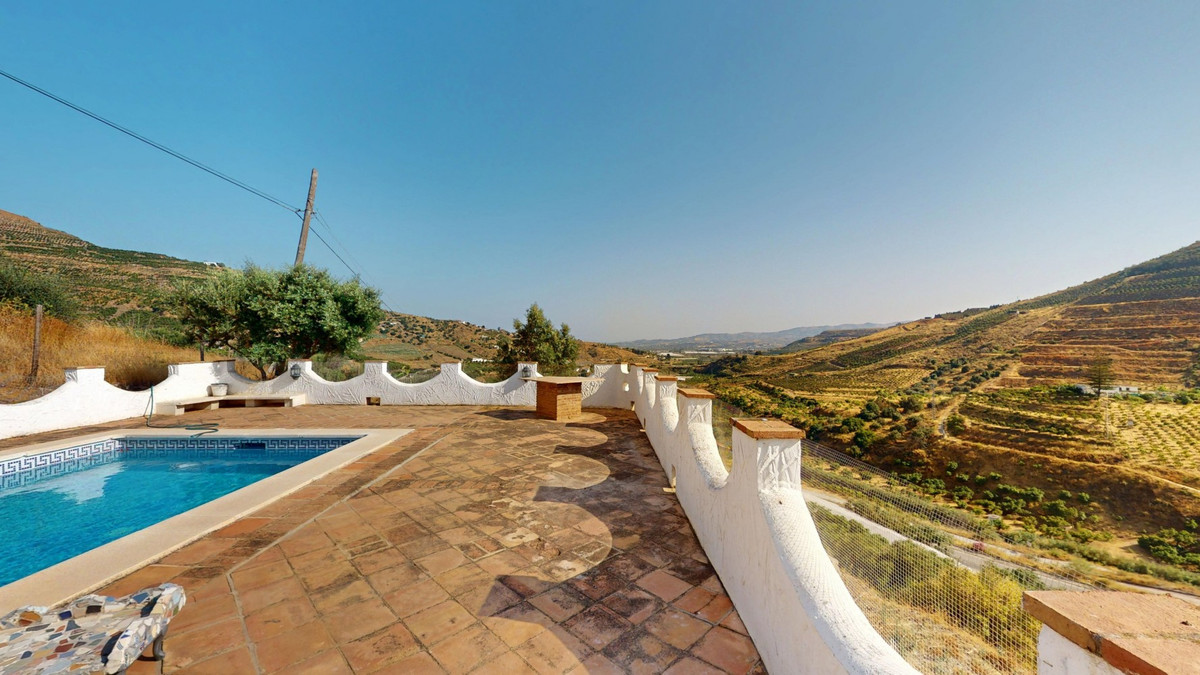 This delightful Spanish villa, located in Viñuela, Málaga, offers a perfect blend of traditional charm and modern comfort. The single-story property spans 167 m2 and features three bedrooms, including a spacious 13.9 m2 primary bedroom, and two bathrooms. Upon entering, you're greeted by the home's most striking feature: beautiful terracotta tile flooring that runs throughout, creating a cohesive and authentic Spanish ambiance. The living areas are characterized by their high, sloping ceilings with exposed wooden beams, adding rustic charm and visual interest to the space. The heart of the home is undoubtedly the living room, which boasts a magnificent stone fireplace as its centerpiece. Large windows and glass doors in this area, as well as in the bedrooms, allow ample natural light to flood the interiors while offering picturesque views of the surrounding landscape. The kitchen presents a harmonious blend of traditional and contemporary design. Modern appliances and sleek cabinetry are juxtaposed against the rustic ceiling beams, creating a functional yet aesthetically pleasing culinary space. The bathrooms, while not extensively detailed in the images, appear to have been updated with modern fixtures. Storage is thoughtfully incorporated throughout the home, with built-in wooden wardrobes in the bedrooms that maintain the overall rustic aesthetic. The property also features two patios, offering delightful outdoor spaces for relaxation and entertainment. A unique aspect of this villa is its attention to decorative details, such as the ornate tile borders in the hallways and bathrooms, which add a touch of traditional Spanish flair to the otherwise simple and elegant interiors. Outside, the villa boasts a beautiful pool and a charming outdoor area perfect for enjoying the Mediterranean climate. Overall, this Málaga villa offers a warm, inviting atmosphere that beautifully marries traditional Spanish architectural elements with modern comforts, creating a truly special living space. We are pleased to be able to present this dream property to you soon, either personally or via virtual viewing. Because this world is unique - just like our Axarquía. In Andalusia. On the Costa del Sol. Here, on the sunny side of life...
