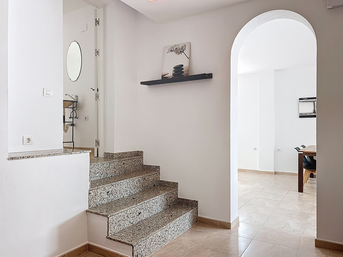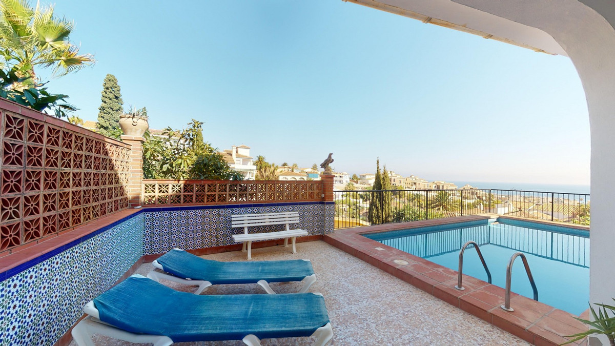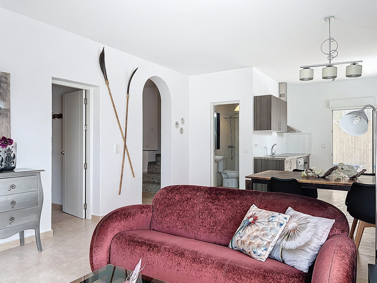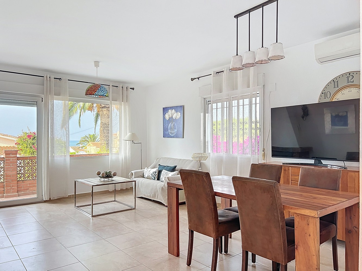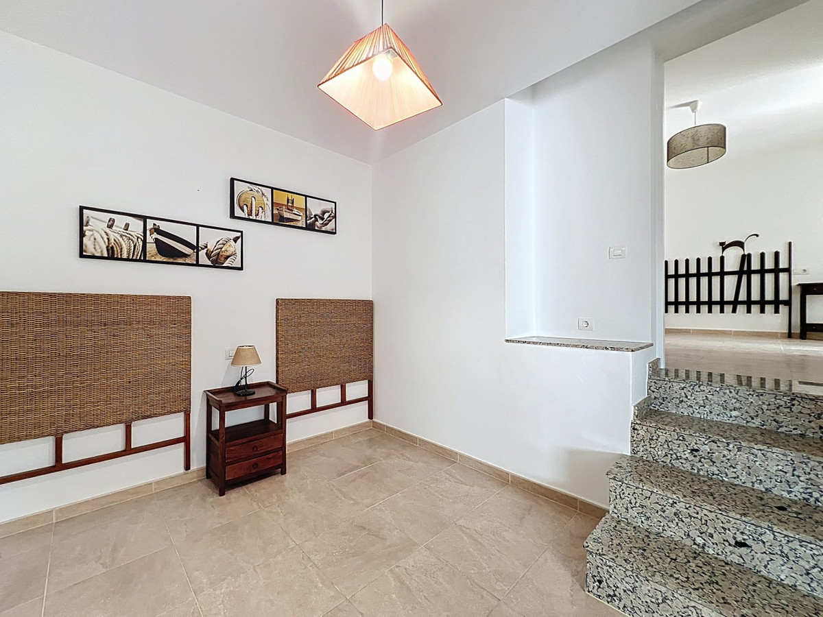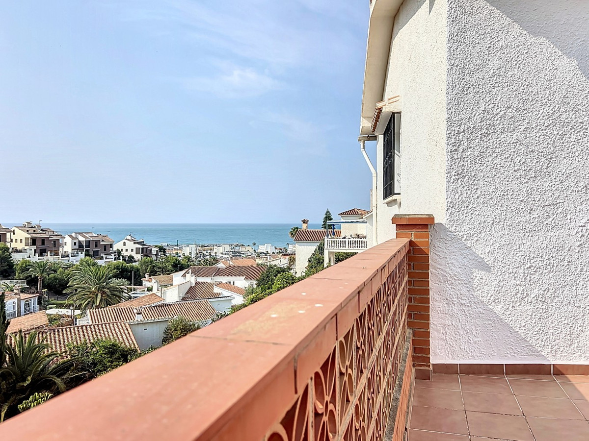 This charming two-story home in Caleta de Vélez offers 169.38 m2 of usable space and 220 m2 built, including terraces, in a privileged location with sea views and a swimming pool. The design blends Mediterranean charm with modern comfort, perfect for enjoying the relaxed lifestyle of the Costa del Sol. The ground floor (87.21 m2) features a bright, open-plan living and dining area with direct access to an outdoor space through large windows and a glass door. This level includes three bedrooms, a full bathroom, and integrated storage solutions, all finished in warm, light tones that enhance the natural light. The upper floor (69.89 m2) continues the harmonious style and includes two more bedrooms, an additional bathroom, a cozy living area with a fireplace, and access to a terrace with open sea viewsideal for relaxing or entertaining. The flooring combines light wood and ceramic, and natural light fills the entire home. Neutral colors and tasteful artistic accents give each room character without overwhelming the space. This versatile property is ideal as a main residence or holiday home, located in one of the most peaceful and sought-after areas of the Málaga coast. We are pleased to be able to present this dream property to you soon, either personally or via virtual viewing. Because this world is unique - just like our Axarquía. In Andalusia. On the Costa del Sol. Here, on the sunny side of life...