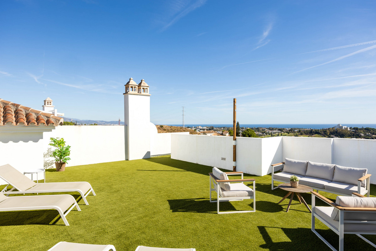 Découvrez un penthouse exceptionnel exposé plein sud à Paraiso Pueblo, Benahavís, où luxe et vue panoramique sur la mer se conjuguent harmonieusement. D'une superficie généreuse de 180 m², cette résidence entièrement meublée offre des intérieurs lumineux et spacieux, complétés par des espaces extérieurs extraordinaires qui sublimeront votre art de vivre.