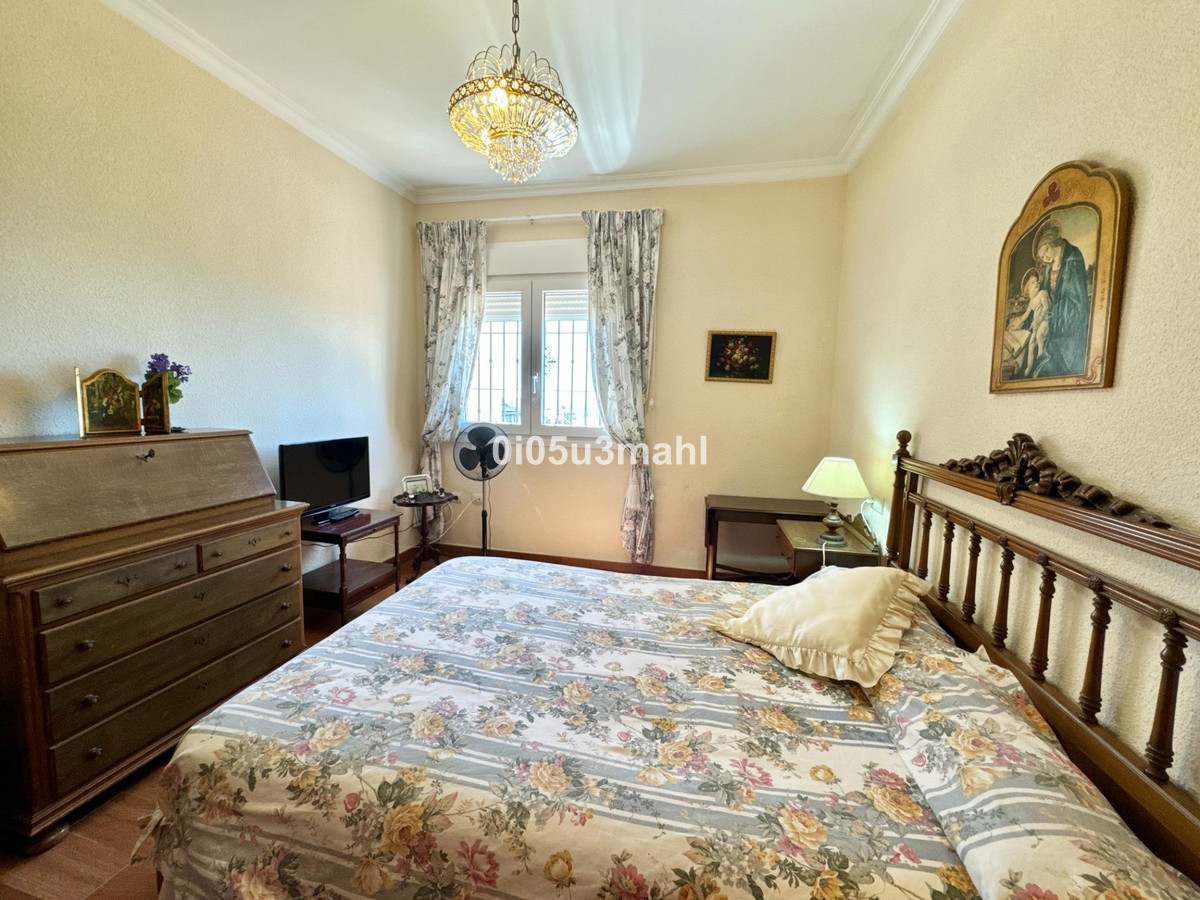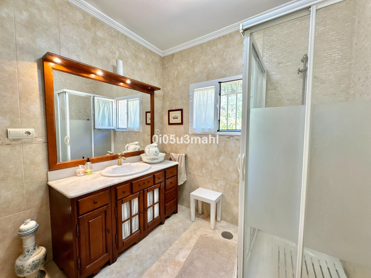 La maison, rénovée en 2006, se déploie sur deux niveaux. Au rez-de-chaussée, on trouve un salon avec cheminée, une grande chambre et une salle de bains. Un escalier confortable mène au premier étage où se situe un vaste et lumineux séjour indépendant donnant accès à une grande terrasse offrant une vue imprenable sur la baie de Malaga. La cuisine indépendante, équipée d'appareils électroménagers et agencée avec soin, se distingue par sa fonctionnalité et son espace. Elle offre un environnement polyvalent et bien organisé, avec un accès aisé aux espaces extérieurs pour profiter de repas en plein air. L'étage comprend également quatre chambres spacieuses, dont trois avec vue sur mer, et deux salles de bains, dont une privative.