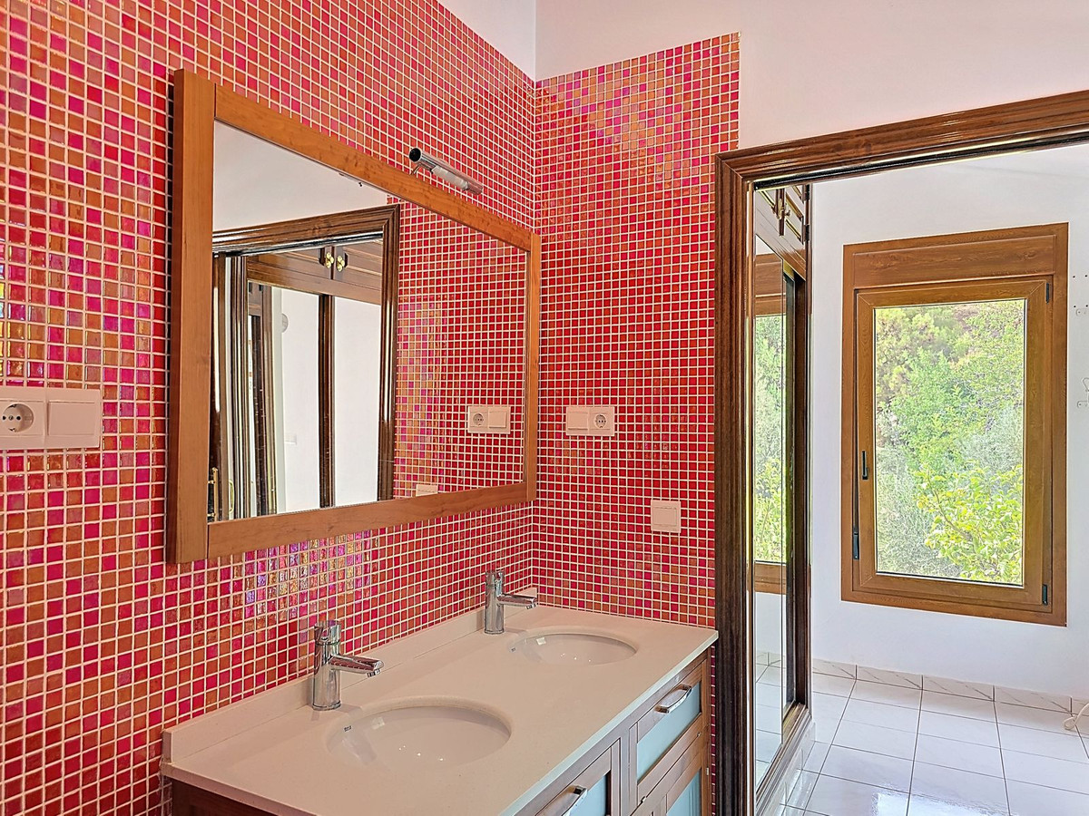 À l'extérieur, vous trouverez tout le nécessaire pour un style de vie méditerranéen par excellence : un magnifique jardin paysager, plusieurs terrasses ensoleillées, une piscine d'eau salée chauffée et un bar élégant avec cuisine extérieure, idéal pour les longues soirées d'été et pour recevoir des invités. Orientée plein sud, la propriété vous permet de profiter du soleil toute la journée et d'une vue panoramique imprenable sur la mer et le paysage environnant.