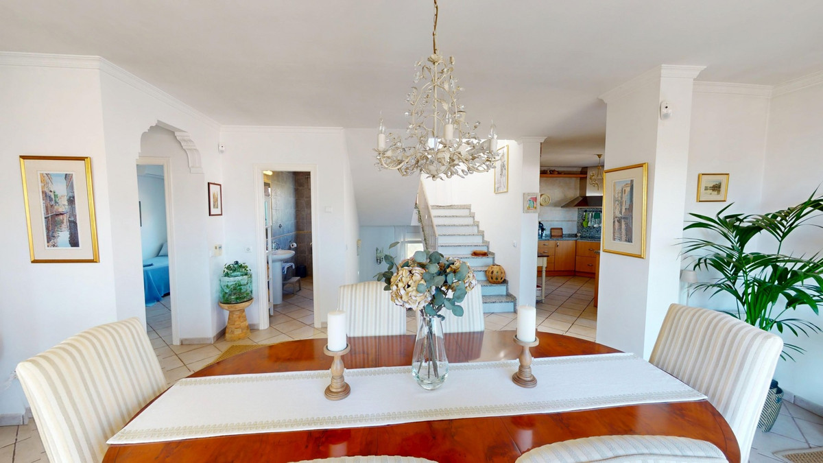 Découvrez un monde où luxe et tranquillité se conjuguent dans cette magnifique villa individuelle, située dans le quartier résidentiel paisible d'El Capitán, près de Torre del Mar et d'Almayate, sur la côte est de Malaga. Son emplacement est idéal pour ceux qui recherchent calme et intimité tout en restant proches des commodités. En quelques minutes seulement, vous rejoindrez les plages d'Almayate et de Torre del Mar, où vous trouverez de charmants restaurants, des boutiques et des promenades animées en bord de mer. La ville de Malaga et l'aéroport sont à seulement 35 minutes en voiture. Nichée sur un terrain privé de 811 m², la villa offre 310 m² d'espace de vie élégant, entouré d'un jardin facile d'entretien, clos d'un mur pour une intimité et une sécurité optimales. Un portail privé permet l'accès aux véhicules, et l'espace extérieur comprend une piscine étincelante, une vaste terrasse couverte pour se détendre à l'ombre, et un charmant coin salon sous une coupole, parfait pour savourer un verre ou un bon livre. À l'intérieur, la maison impressionne par ses espaces généreux et sa luminosité naturelle. Le hall d'entrée mène à un garage double avec espace de rangement supplémentaire. Au rez-de-chaussée, vous trouverez un vaste séjour avec un coin salon attenant et de larges baies vitrées s'ouvrant sur la piscine et le jardin, ainsi qu'une salle de bains et une chambre idéale pour les invités. À l'étage, le cœur de la maison se dévoile : un espace lumineux et décloisonné réunissant la cuisine, la salle à manger et le séjour. La lumière naturelle inonde la pièce à travers de grandes fenêtres, créant une atmosphère chaleureuse et accueillante, propice à la détente en famille comme aux réceptions élégantes. La cuisine entièrement équipée dispose d'élégants placards en bois, d'un plan de travail en granit et offre une vue sur le jardin. Depuis le séjour, vous accédez à un grand balcon offrant une vue imprenable sur la mer Méditerranée. Cet étage comprend également deux chambres, une salle de bains spacieuse et des toilettes séparées. Une terrasse donnant sur la rue est accessible depuis ce niveau ou par un escalier extérieur, offrant un espace extérieur supplémentaire pour se réunir ou profiter de soirées paisibles. Au dernier étage, une terrasse sur le toit couronne la villa, offrant une vue panoramique sur la mer, les montagnes et la campagne environnante – un lieu idéal pour admirer les couchers de soleil et la sérénité des soirées andalouses. Cette villa allie élégance, confort et charme méditerranéen : un véritable havre de paix où chaque jour est une invitation au voyage. Nous serions ravis de vous présenter prochainement cette propriété de rêve, que ce soit en personne ou par le biais d’une visite virtuelle. Car ce monde est unique, à l’image de notre Axarquía. En Andalousie. Sur la Costa del Sol. Ici, la vie est douce et ensoleillée.