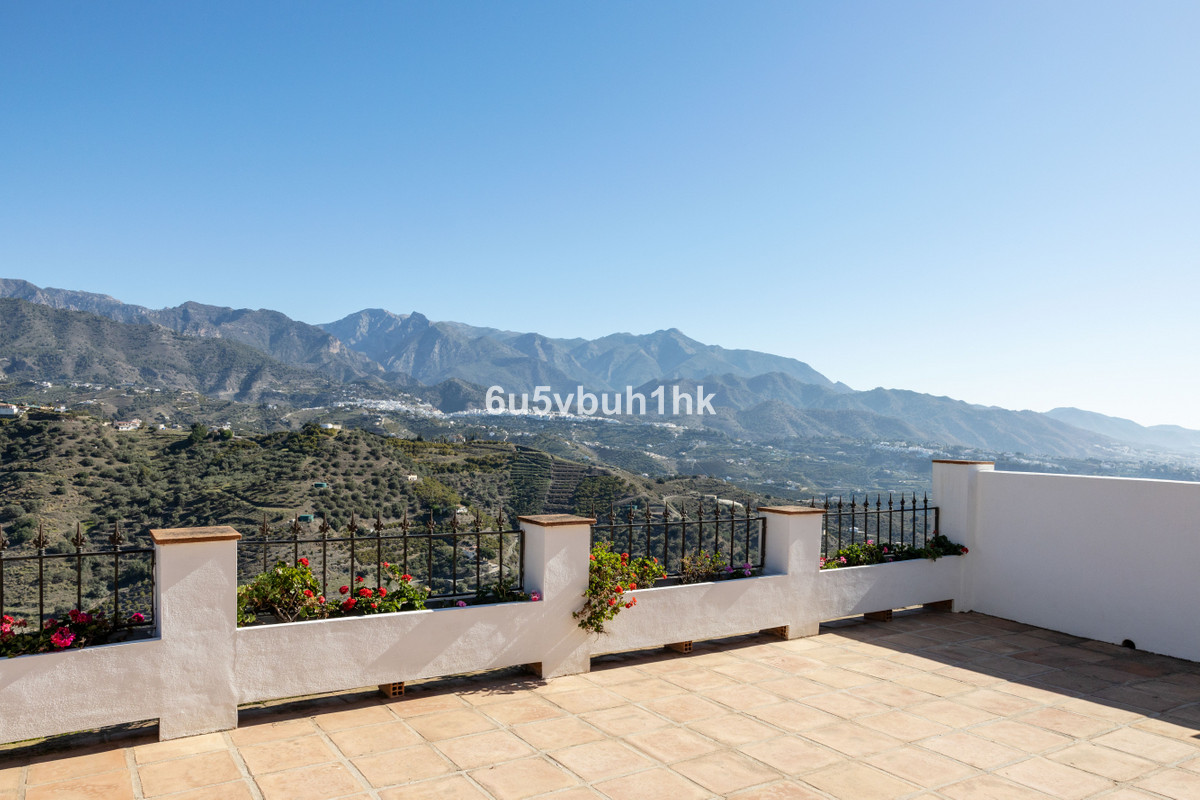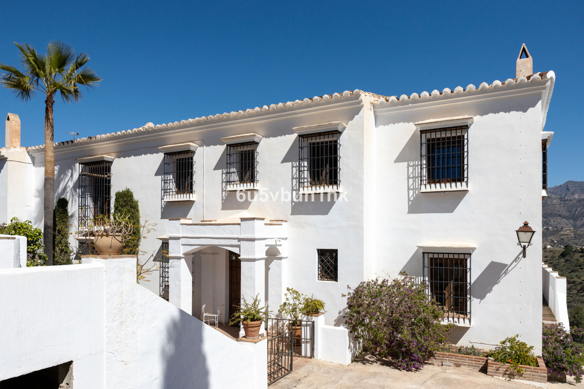 Cette belle et spacieuse propriété est située dans un cadre tranquille, idéal pour ceux qui recherchent un environnement paisible et relaxant, entre les villages de Torrox et Frigiliana, à seulement 25 minutes de la plage. En entrant dans la propriété, une allée presque entièrement pavée mène à une vaste aire d'entrée/parking pouvant accueillir plusieurs véhicules. La maison principale se compose de deux maisons séparées reliées par un couloir intérieur. Elle comprend également un studio indépendant. Au total, la villa compte 7 chambres, ce qui la rend idéale pour accueillir un grand nombre de personnes : famille nombreuse, groupe d’amis ou projet d’investissement, comme une maison d’hôtes. Cette très belle propriété dispose également de plusieurs terrasses, d'une piscine privée et de jardins, autant d'endroits parfaits pour se détendre et profiter des montagnes environnantes et des vues imprenables sur le village de Frigiliana. De plus, l'un de ses principaux atouts est son studio de yoga, idéal pour tous ceux qui pratiquent le yoga ou d'autres formes d'exercice. La propriété comprend également une cave à vin.