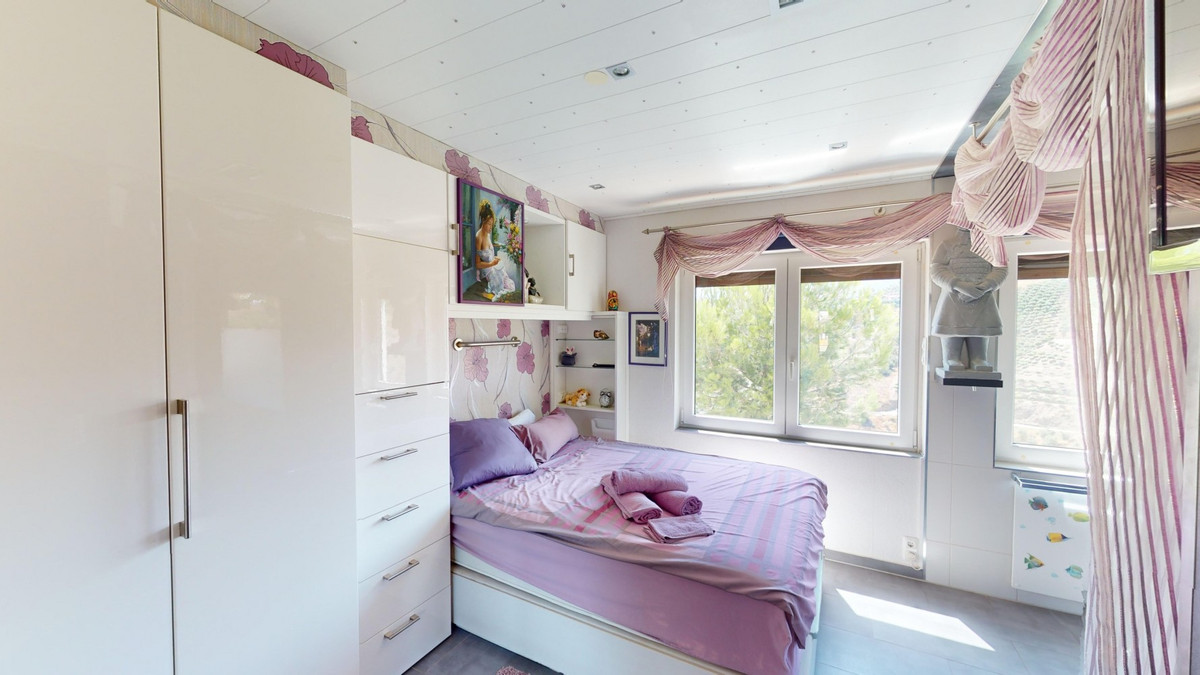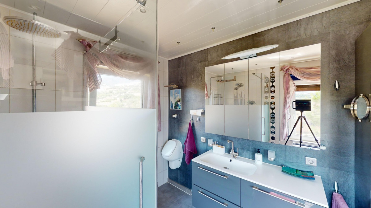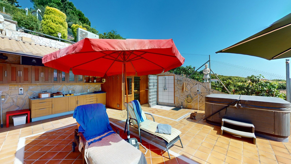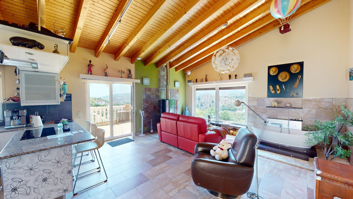 Magnifique villa à vendre au pied de Frigiliana. Cette impressionnante villa, nichée au pied de Frigiliana, offre deux logements indépendants sur deux niveaux, chacun avec son propre accès et son intimité. Le logement supérieur, d'une superficie de 150 m², comprend un vaste espace de vie ouvert avec cuisine attenante et rangements pratiques. La terrasse offre une vue imprenable sur les montagnes environnantes. Le salon se distingue par sa cheminée pivotante, qui apporte chaleur et ambiance. La terrasse abrite également une salle de fitness. Autre atout : la luxueuse baignoire du salon, idéale pour se détendre. Ce logement comprend trois chambres spacieuses, deux salles de bains (dont une attenante à la chambre principale) et des toilettes invités. Le logement inférieur, d'une superficie totale de 80 m², comprend un espace de vie convivial avec cuisine, une chambre et une salle de bains. L'ensemble de la maison est équipé d'un chauffage au sol, de la climatisation et d'un système d'aspiration centralisée. Construite selon les normes allemandes les plus exigeantes, elle bénéficie d'une excellente isolation et de matériaux de haute qualité. Un système de panneaux solaires sur le toit assure le chauffage et l'eau chaude sanitaire. L'espace extérieur de cette villa d'exception est tout simplement parfait. Vous y trouverez une piscine d'eau salée chauffée avec une couverture facile à manipuler, un jacuzzi relaxant et une cuisine d'été entièrement équipée avec sauna. De plus, un atelier, une caravane et une petite dépendance se situent au pied de la propriété. Le terrain de 6 000 m² est agrémenté de nombreux arbres fruitiers, une véritable invitation à la flânerie pour les amoureux de la nature. La villa bénéficie d'une excellente desserte et est idéale pour ceux qui apprécient une vie paisible en pleine nature. Vivez une expérience luxueuse dans un cadre à couper le souffle : votre nouvelle demeure au pied de Frigiliana vous attend ! Nous serons ravis de vous présenter prochainement cette propriété de rêve, en personne ou par visite virtuelle. Car ce monde est unique, à l'image de notre Axarquía. En Andalousie. Sur la Costa del Sol. Ici, sous le soleil…