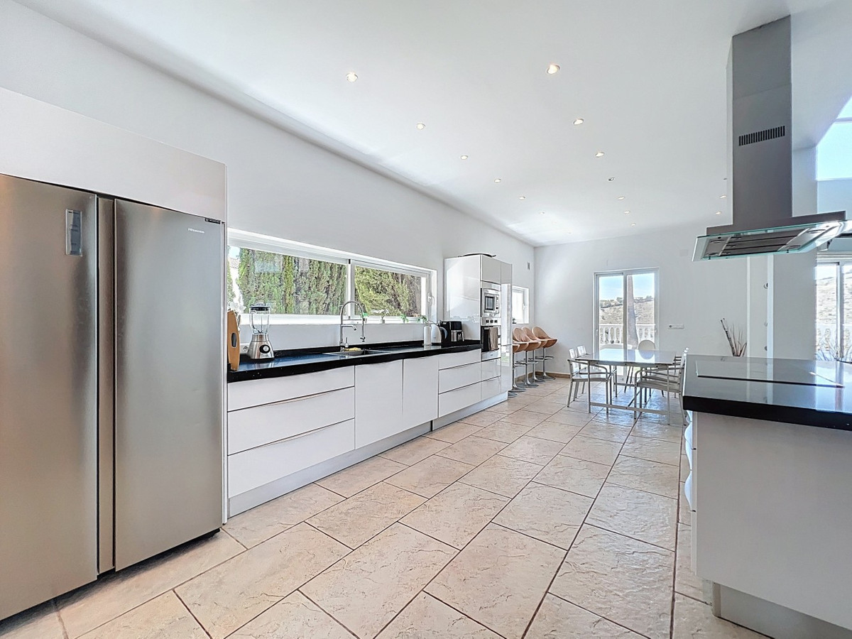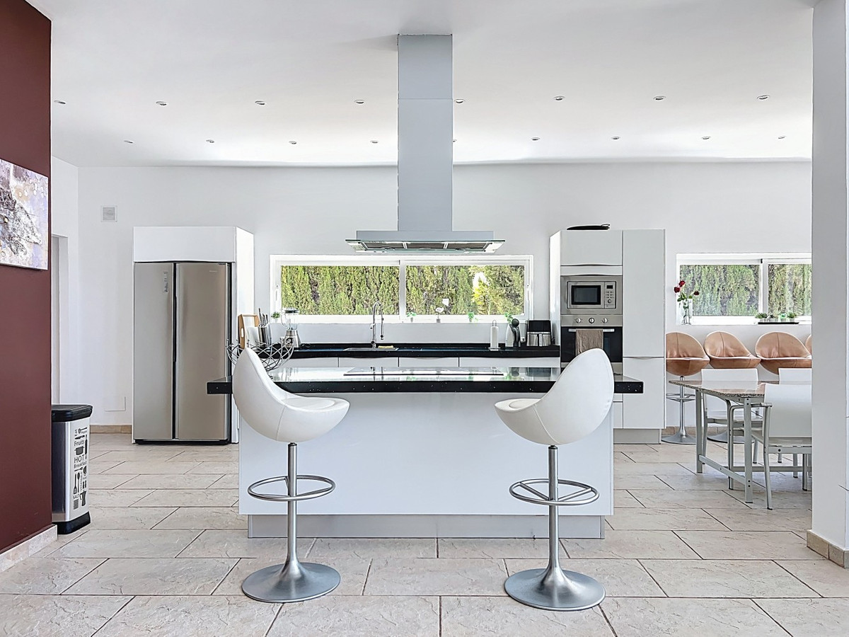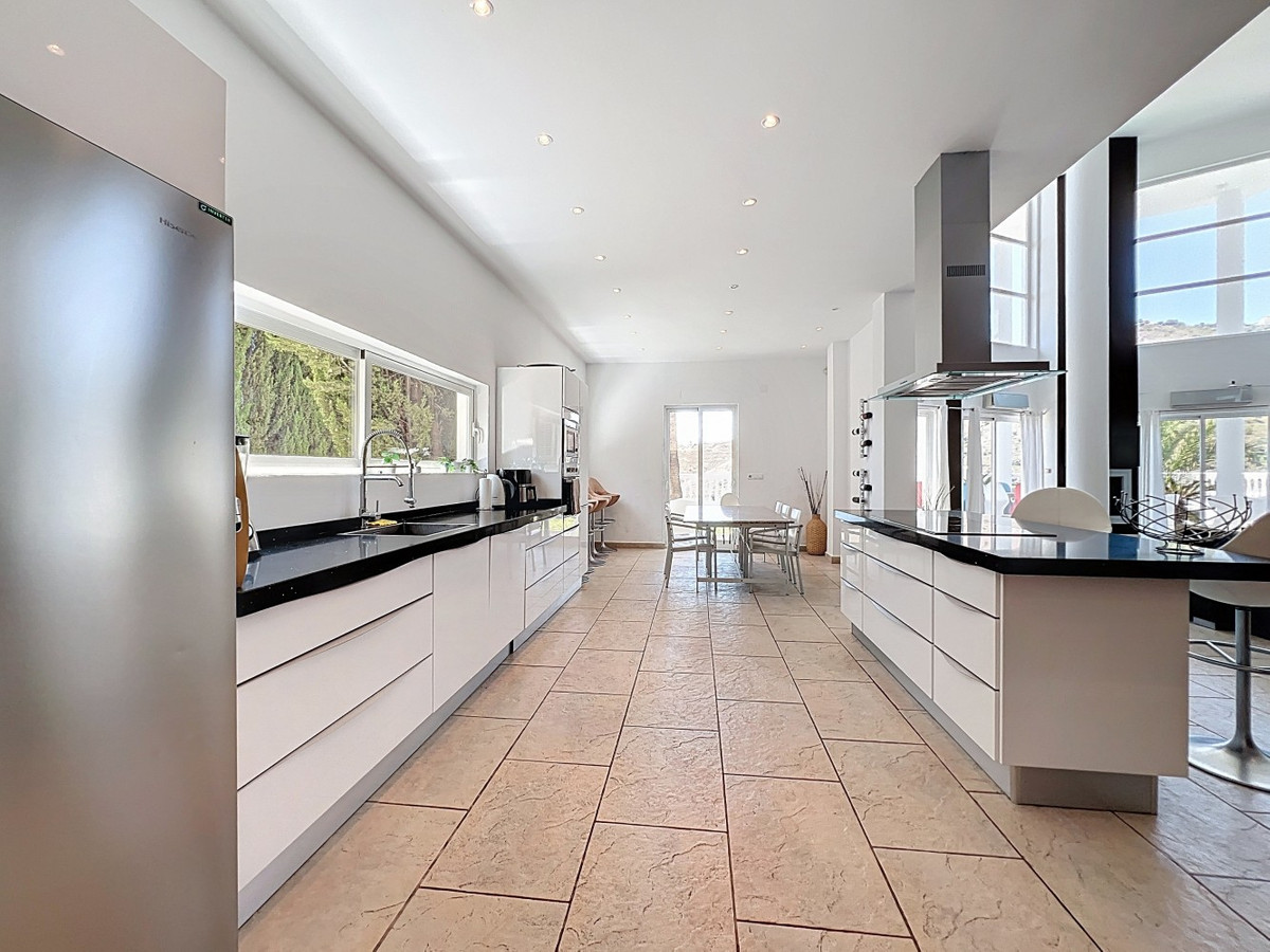 Cette impressionnante villa à Malaga, en Espagne, offre un mélange harmonieux d'espace, de luxe et de design moderne. S'étendant sur 395,8 m² répartis sur deux niveaux, la propriété comprend 7 chambres et 5 salles de bains, ce qui la rend idéale pour les familles nombreuses ou pour ceux qui aiment recevoir. Le rez-de-chaussée, d'une superficie de 212,7 m², abrite un magnifique espace de vie ouvert avec une impressionnante hauteur sous plafond. De grandes baies vitrées et des portes coulissantes en verre inondent l'espace de lumière naturelle et créent une transition fluide entre l'intérieur et l'extérieur. Le salon est dominé par une élégante cheminée et agrémenté d'un mobilier contemporain et confortable. La cuisine ultramoderne est un véritable rêve pour les gourmets, avec ses meubles blancs laqués, ses appareils haut de gamme et son îlot central spacieux avec coin repas. De larges fenêtres offrent une vue imprenable sur le paysage environnant pendant la préparation des repas. Un jardin zen intérieur, agrémenté de sable et de plantes décoratives, apporte une touche de sérénité au rez-de-chaussée. Les couloirs sont larges et lumineux, et leurs murs sont ornés d'œuvres d'art soigneusement sélectionnées. En accédant au deuxième étage par un escalier moderne aux balustrades en verre, vous découvrirez 183 m² d'espace de vie supplémentaire. La chambre principale, spacieuse (26,9 m²), offre une vue imprenable et une salle de bains privative. Les salles de bains de la propriété, élégantes et modernes, sont dotées de carrelage grand format, de douches à l'italienne et d'équipements contemporains. Certaines présentent des éléments de design originaux, comme des rideaux de douche imprimés de journaux, qui apportent une touche ludique à l'esthétique minimaliste. À l'extérieur, la propriété bénéficie d'une position dominante offrant une vue panoramique sur les montagnes et la campagne environnantes, ainsi que sur la Méditerranée scintillante. L'espace extérieur comprend une grande piscine, idéale pour se détendre ou recevoir tout en profitant du paysage à couper le souffle. La propriété est facilement accessible, assurant une liaison aisée avec les commodités et les attractions touristiques à proximité. De vastes terrasses offrent un espace généreux pour la détente et les loisirs en plein air, faisant de cette villa le lieu idéal pour profiter du climat espagnol avec style. Dans toute la villa, la palette de couleurs est principalement blanche, créant une atmosphère lumineuse et aérée parfaitement adaptée au climat espagnol. Des touches de couleur dans le mobilier et les œuvres d'art ajoutent un intérêt visuel sans perturber l'ambiance sereine. Cette villa représente le summum de l'art de vivre espagnol moderne, alliant intérieurs spacieux, finitions haut de gamme et vues à couper le souffle dans un ensemble impressionnant : une véritable maison de rêve. Nous sommes ravis de pouvoir vous présenter prochainement cette propriété d'exception, en personne ou par visite virtuelle. Car ce monde est unique, à l'image de notre Axarquía. En Andalousie. Sur la Costa del Sol. Ici, sous le soleil…