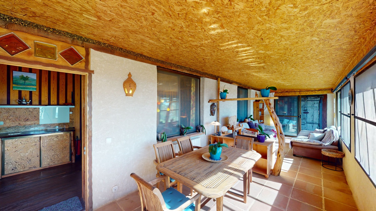 Entre la Sierra de Almijara et la mer Méditerranée se niche cette spectaculaire finca écologique de 4 hectares, bordant le parc naturel de Maro-Cerro Gorde, offrant un havre de paix et d'intimité absolue. La propriété s'étend sur un terrain de 35 955 mètres carrés et propose une surface habitable totale de 270 mètres carrés. Entourée d'une nature luxuriante, elle offre des vues imprenables sur la mer et les montagnes. Grâce à une végétation variée, les différents bâtiments sont parfaitement dissimulés, créant une atmosphère sereine et forestière. La maison principale comprend un vaste séjour avec une magnifique cheminée, une cuisine entièrement équipée avec cellier, une salle à manger, une chambre, une salle de bains avec douche à effet pluie, des toilettes invités, un salon de lecture et de détente, un sauna, une salle de sport et un bureau pouvant être transformé en une grande chambre. En sortant du bureau, on accède à une pièce construite en briques naturelles, évoquant un igloo. Cette pièce dispose également d'une terrasse idéale pour se détendre et profiter du cadre environnant. La maison secondaire offre un espace chaleureux avec un séjour-salle à manger et une cheminée, une cuisine entièrement équipée, une chambre, une salle de bains et une terrasse privative, à l'abri des regards pour une intimité optimale. La maison d'hôtes comprend une chambre, une cuisine et une salle de bains. La finca dispose d'un atelier équipé de 25 m². Elle offre également un espace piscine, un lieu idéal pour se détendre en toute tranquillité. Grâce à la nature environnante et à la taille de la piscine, on a l'impression de nager dans un lac en pleine forêt. La propriété se compose de cinq bâtiments stratégiquement répartis et espacés pour garantir une intimité et une tranquillité maximales à ses occupants. Une plateforme d'environ 300 m² offre une vue panoramique à 360° sur la mer et les montagnes. Le domaine abrite une grande variété d'arbres fruitiers et de fleurs du monde entier, avec 174 variétés différentes. La propriété bénéficie d'une source naturelle, d'un puits et de l'eau du réseau d'irrigation. Elle dispose de deux réservoirs d'eau couverts en béton d'une capacité de 125 000 litres chacun, ainsi que d'un réservoir d'eau de source de 3 000 litres dans la maison principale. La finca est accessible par une route asphaltée de 4 km depuis la route N-340. Elle se situe à 6 km des plages du parc naturel, à 10 km du centre de Nerja, à 80 km de l'aéroport de Malaga et à 90 km du centre de Grenade. Avec tous les services et une autonomie totale, dans ce qui est considéré comme le meilleur climat d'Europe, ce lieu offre une excellente qualité de vie. Nous serons ravis de vous présenter prochainement cette propriété de rêve, en personne ou par visite virtuelle. Car ce monde est unique, à l'image de notre Axarquía. En Andalousie. Sur la Costa del Sol. Ici, sous le soleil…