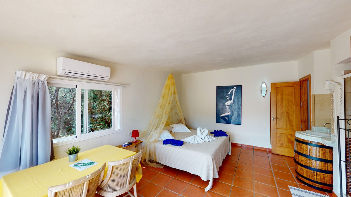 Finca unique à proximité de la mer - Location touristique et résidence privée, ici tout est possible. Les véritables fincas, authentiques et uniques, se font rares sur la Costa del Sol, du fait de leur taille impressionnante et des possibilités quasi illimitées qu'elles offrent. Mais elles existent encore, comme celle-ci, entre Vélez-Málaga et Arenas, au cœur de l'Axarquía… et pourtant à seulement quelques minutes en voiture de la mer. Une propriété idéale, commercialisée en exclusivité par Casa & Terreno, pour les particuliers comme pour les investisseurs : hôtel de campagne, chambres d'hôtes ou haras. Ce domaine majestueux est accessible par une courte route goudronnée, à l'écart du stress et de la circulation. Sur un terrain de 140 000 m², on trouve une surface construite de 1 500 m², 13 studios entièrement équipés, 2 appartements indépendants et une écurie – un ensemble unique dans le sud de l'Espagne. Plusieurs bâtiments complètent le terrain. La surface habitable totale est d'environ 920 m². De plus, la propriété comprend environ 340 m² d'espace de rangement, un sauna et les piscines. Parmi ses autres atouts, à seulement 40 minutes de l'aéroport de Malaga, figurent une grande piscine de 8 x 15 mètres avec jacuzzi attenant et un vaste espace barbecue, une autre piscine de 3 x 8 mètres offrant une vue panoramique sur la mer Méditerranée, une cuisine professionnelle entièrement équipée, un bar également entièrement équipé et un parking privé pouvant accueillir plus de 30 véhicules. Tout est prêt à vous accueillir ! Bénéficiant d'une exposition plein sud, la propriété est ensoleillée toute la journée et offre une vue imprenable sur la mer. La plage est à seulement 15 minutes. Les appartements, situés dans la partie supérieure de la finca, peuvent être utilisés à des fins commerciales ou privées. Une deuxième piscine est également disponible. La propriété est vendue avec un droit d'eau, ce qui élimine tout problème à ce sujet. C'est le lieu idéal pour exprimer pleinement votre créativité : événements, mariages, soirées d'entreprise et chambres d'hôtes. Le mélange de style cortijo authentique et de touches de modernité crée une atmosphère parfaite. Il s'agit d'une propriété unique, à plusieurs niveaux, avec des espaces de détente et des caractéristiques exceptionnelles. Nous sommes ravis de pouvoir vous présenter prochainement cette propriété de rêve, en personne ou en visite virtuelle. Car ce lieu est unique, à l'image de notre Axarquía. En Andalousie. Sur la Costa del Sol. Ici, sous le soleil…
