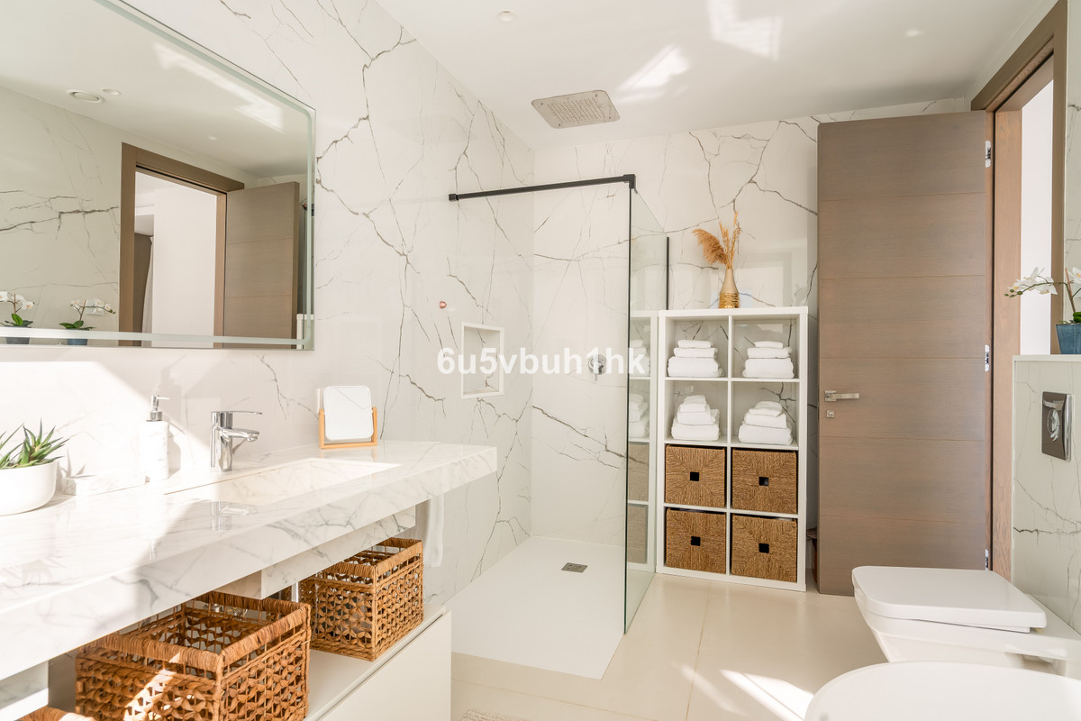 Bienvenue dans cette superbe villa moderne située à Monte Halcones, à proximité immédiate de La Zagaleta, quartier le plus exclusif et prestigieux d'Espagne et de Marbella. Cette résidence d'exception, avec ses cinq chambres et cinq salles de bains, allie une architecture avant-gardiste, une élégance intemporelle et une vue imprenable sur la mer, pour un style de vie marbellien par excellence. Implantée sur un terrain de 1 005 m², cette villa a été construite avec des matériaux de la plus haute qualité et un souci du détail exceptionnel. Elle est en parfait état et prête à être habitée dès le premier jour. Le niveau inférieur est conçu pour les loisirs et le divertissement, avec un bar élégant, un salon confortable et une salle de cinéma, ainsi que deux chambres spacieuses, chacune avec sa propre salle de bains privative, parfaites pour la famille ou les invités. Au rez-de-chaussée, le séjour et la salle à manger décloisonnés s'ouvrent harmonieusement sur une cuisine moderne et élégante, baignés de lumière naturelle grâce à de grandes baies vitrées. Celles-ci donnent directement sur la piscine, la terrasse et le jardin luxuriant, créant un cadre idéal pour une vie méditerranéenne décontractée. Ce niveau comprend également une chambre avec salle de bains privative, pratique au quotidien. À l'étage, vous découvrirez deux élégantes suites, dont une suite parentale spectaculaire avec une luxueuse salle de bains privative, un espace généreux et une terrasse privée. Cet étage offre également une terrasse panoramique avec vue imprenable sur la mer, l'endroit idéal pour admirer les magnifiques levers de soleil de Marbella. La villa est équipée d'un ascenseur privé, d'un garage fermé pour deux voitures et d'un parking supplémentaire sous l'abri pour deux autres véhicules. Située à Monte Halcones, cette propriété bénéficie du calme, de l'intimité et de la proximité des terrains de golf les plus exclusifs de la région, notamment Las Brisas, Los Naranjos et La Zagaleta Golf, et se trouve à distance de marche des bars et des magasins, tout en étant à quelques minutes en voiture du Golden Mile de Marbella et de ses plages de sable fin. C'est bien plus qu'une simple maison : c'est l'expression d'une élégance moderne, d'un confort absolu et d'une beauté côtière incomparable, nichée dans l'un des emplacements les plus privilégiés de Marbella. Monte Halcones est un quartier résidentiel exclusif à flanc de colline à Benahavís, jouxtant le prestigieux domaine de La Zagaleta et à quelques minutes en voiture de San Pedro, Marbella et Puerto Banús. Il offre des vues imprenables sur la mer Méditerranée et le mont La Concha, alliant luxe et tranquillité dans un cadre naturel préservé. Le quartier dispose d'un petit centre commercial avec restaurants, cafés et boutiques, pour un confort optimal au quotidien. Grâce à son emplacement privilégié, sa sécurité renforcée et sa proximité avec les golfs, les plages et les écoles internationales, Monte Halcones s'impose comme l'un des quartiers résidentiels les plus prisés de la Costa del Sol.