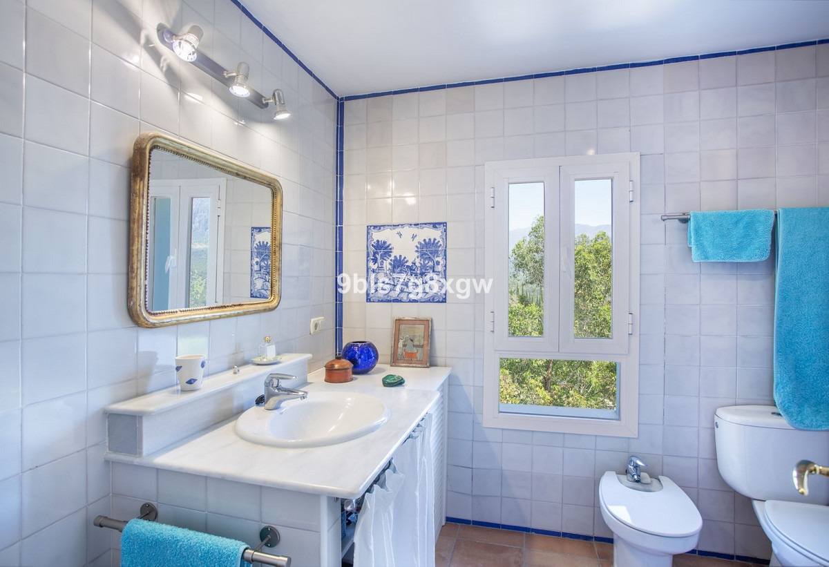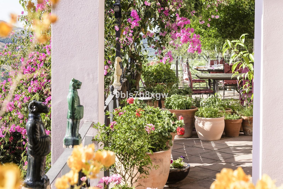 À l'extérieur, des jardins méditerranéens luxuriants et des arbres matures entourent la propriété, créant une atmosphère sereine de beauté naturelle. Au cœur du domaine, une piscine étincelante trône en maître, entourée de terrasses baignées de soleil et d'une pergola ombragée, l'endroit idéal pour de longs après-midi d'été. De tous côtés, des vues panoramiques s'offrent à la contemplation du paysage, invitant à la détente et à une profonde immersion dans la campagne andalouse.