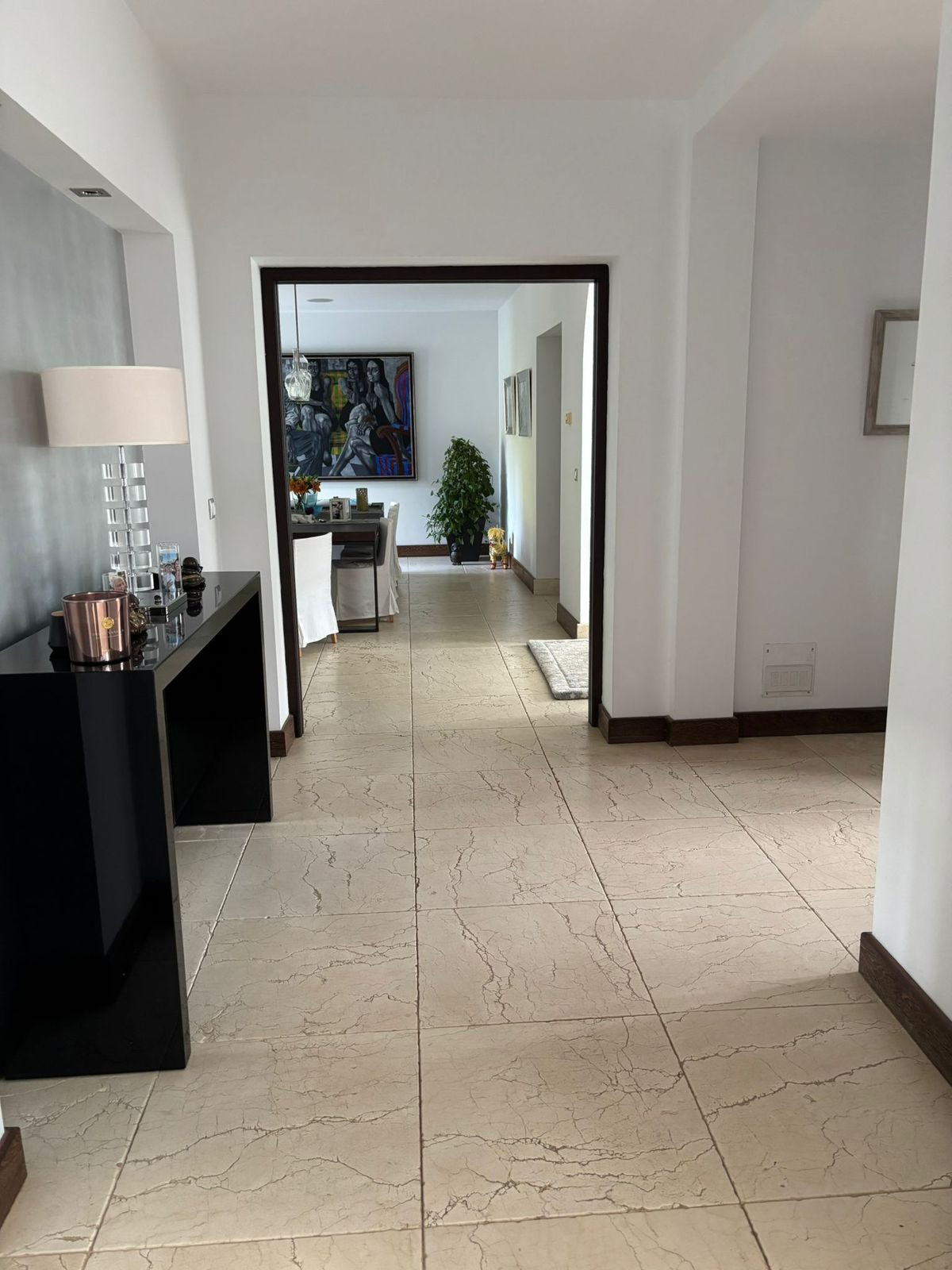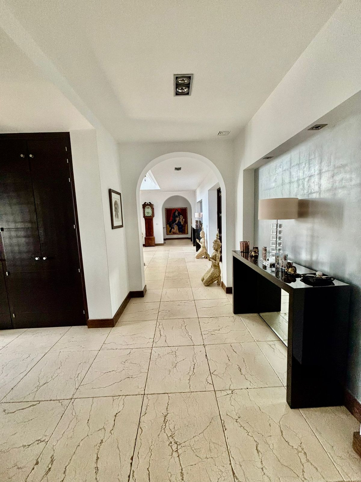 Magnifique villa située dans le prestigieux lotissement San Roque Club, à proximité de l'un des plus beaux golfs d'Andalousie, avec accès privé et sécurité 24h/24, incluant un poste de garde et un agent de sécurité dans tout le complexe. Cette somptueuse villa offre une vue imprenable sur le golf et les montagnes. Implantée sur un terrain de 2 250 m² avec une surface habitable de 600 m², elle se déploie sur trois niveaux. Elle comprend six chambres spacieuses, chacune avec salle de bains et dressing. L'une des chambres dispose également d'un hammam. Le vaste séjour, spectaculaire, s'ouvre sur le jardin et la piscine. L'immense cuisine est équipée d'appareils Miele et de finitions luxueuses. La salle à manger, attenante à la cuisine, et une grande pièce dédiée à une cave à vin exclusive complètent ce bien. Un appartement indépendant avec sa propre cuisine se trouve également au rez-de-chaussée. Le jardin comprend un espace détente, un billard, un coin repas, un barbecue, une salle de sport entièrement équipée et une immense piscine de 12 x 6 mètres ! À l'arrière, un garage fermé peut accueillir deux voitures, et des places de parking supplémentaires sont disponibles à l'extérieur, tout en restant sur la propriété privée. Cette villa est également équipée d'un chauffage au sol et d'un système audio Sonos. La villa de vos rêves est disponible pour une visite.