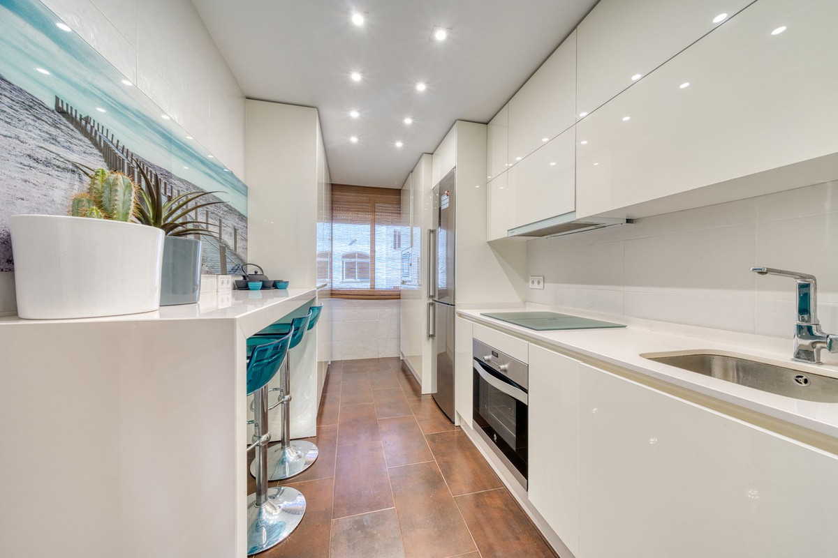 L'intérieur, lumineux et élégant, abrite une cuisine contemporaine flambant neuve aux lignes épurées, dotée de meubles aux lignes nettes et d'électroménagers haut de gamme, qui s'harmonisent parfaitement avec l'atmosphère méditerranéenne décontractée de la maison. La terrasse d'origine a été entièrement fermée afin de créer un espace de vie supplémentaire baigné de lumière, dont on peut profiter toute l'année. Cet espace polyvalent est idéal comme véranda, coin lecture, extension de la salle à manger ou bureau paisible, profitant d'une douce lumière naturelle du matin au soir.