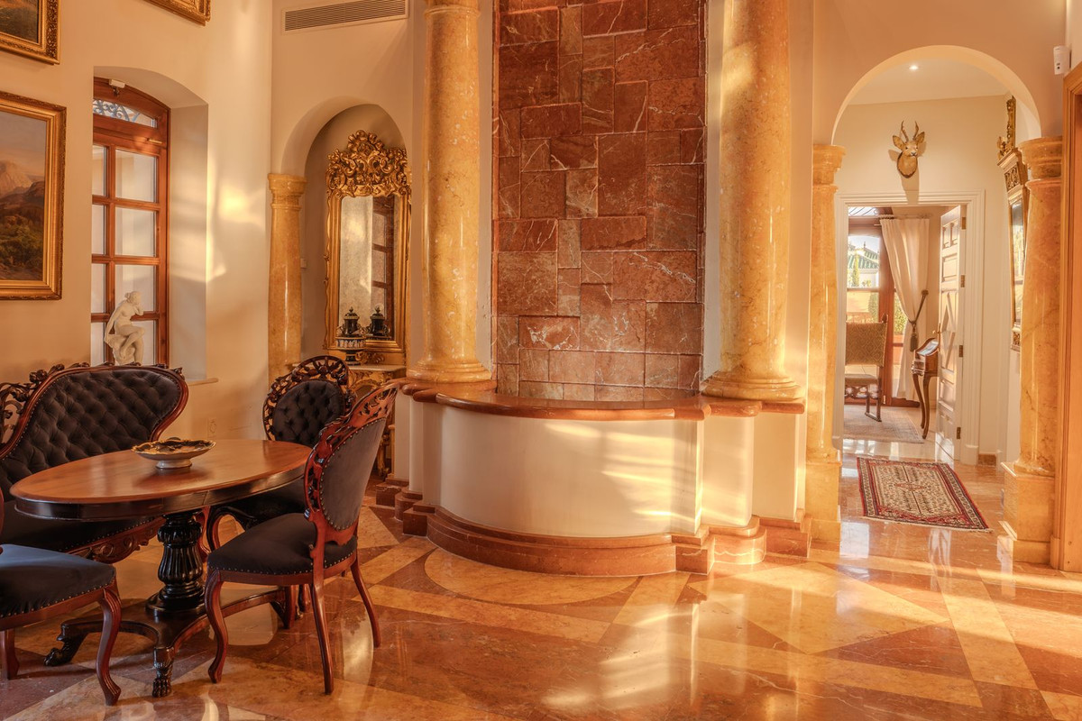 Élégamment située à Aloha, Nueva Andalucía, l'une des adresses les plus prisées de Marbella, cette résidence emblématique orientée ouest se dresse sur un terrain de 3 400 m² et séduit par son allure grandiose et raffinée. Ses 1 727 m² d'intérieurs révèlent de hauts plafonds à double hauteur, des boiseries ouvragées et du marbre travaillé à la main, créant des espaces d'une beauté intemporelle et d'un caractère sophistiqué.