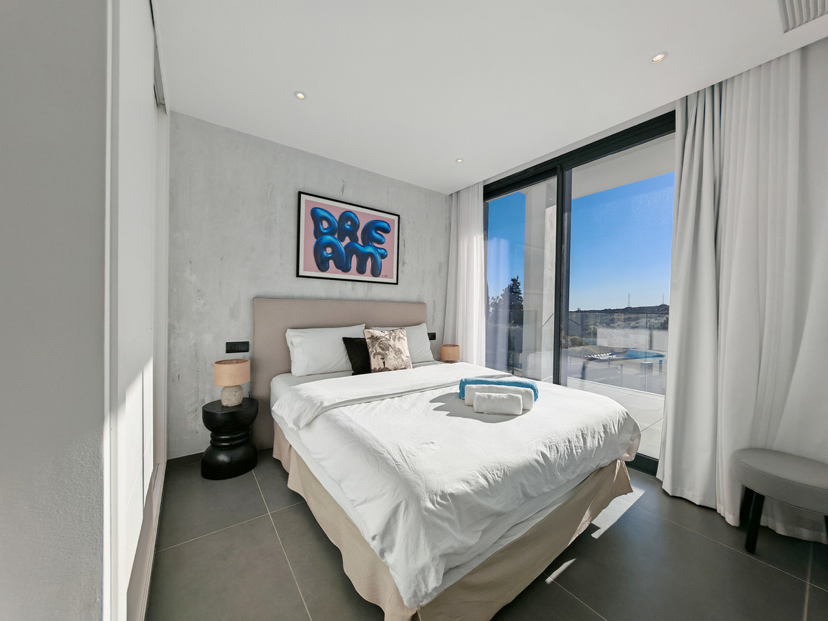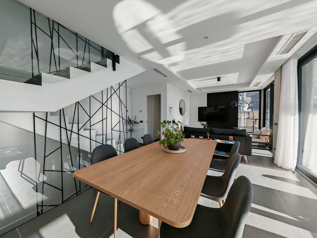 Villa à vendre à Valle Romano, Estepona, offrant 4 chambres, 3 salles de bains (dont une attenante), 1 WC et une orientation ouest. Elle dispose d'une piscine privée, d'un garage privé (1 place de parking) et d'un jardin privatif. D'une superficie construite de 316 m² sur un terrain de 495 m², elle bénéficie des commodités suivantes : climatisation, ameublement complet, cuisine équipée, sous-sol, chambre d'amis, alarme, WC invités, salon, vue sur la campagne, la montagne et le golf, piscine chauffée, arrosage automatique, domotique, buanderie, Wi-Fi, terrasse couverte, placards intégrés, chauffage au sol (dans les salles de bains), accès facile à la mer/plage, au golf, aux commerces, au centre-ville, au port et aux écoles, et système de surveillance par caméras.