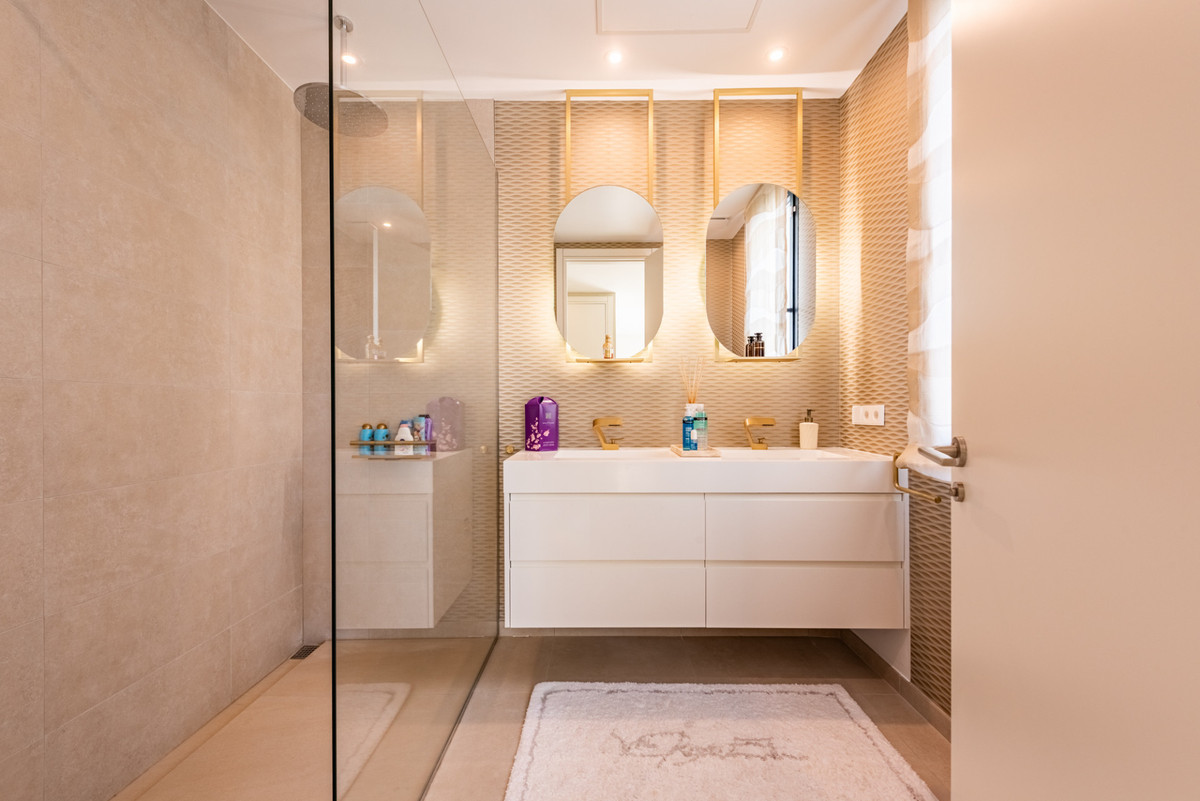 Cette superbe propriété comprend 5 salles de bains privatives, ainsi que 2 toilettes invités élégantes pour plus de confort. À l'intérieur, vous découvrirez de vastes espaces de vie, dont un salon, un bar privé raffiné, une salle de sport entièrement équipée et des buanderies fonctionnelles, le tout aménagé avec un mobilier haut de gamme et une décoration design.