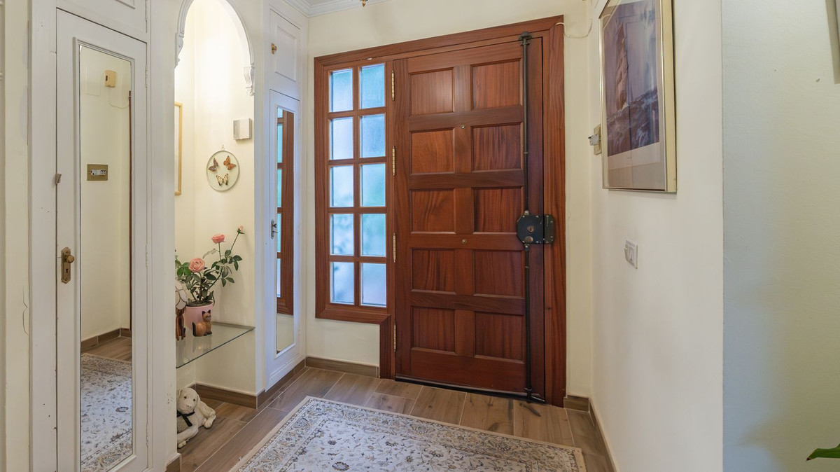 En entrant dans la propriété, un élégant couloir divise la maison en deux parties : l’espace nuit, comprenant 3 chambres et 2 salles de bains (dont une attenante), et l’espace de vie, où vous profiterez d’une cuisine lumineuse et spacieuse avec accès direct à une charmante véranda orientée à l’est, idéale pour prendre un petit-déjeuner ensoleillé.