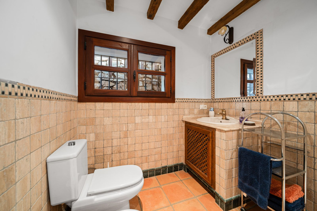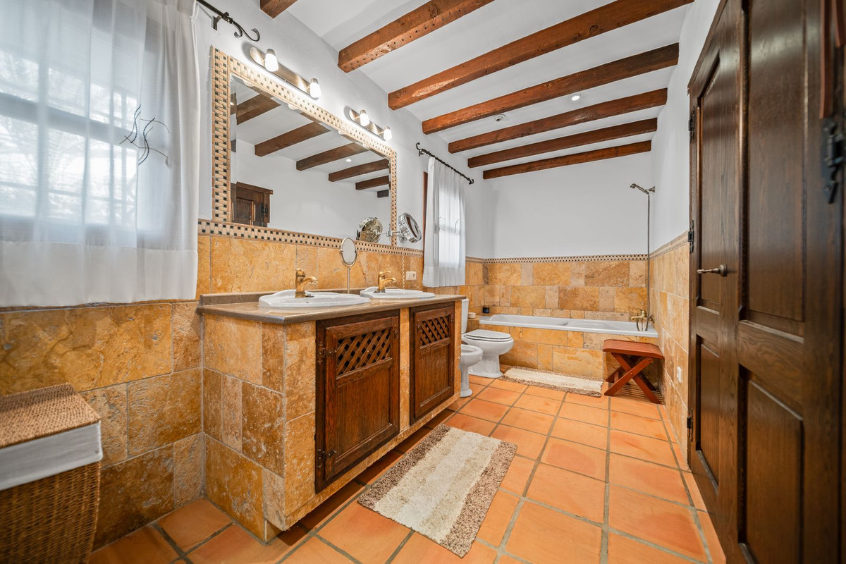 La villa est en excellent état et séduit par son caractère andalou authentique : de magnifiques poutres en bois, des détails en brique et en pierre, et une élégante finition rustique qui crée une atmosphère chaleureuse et accueillante.