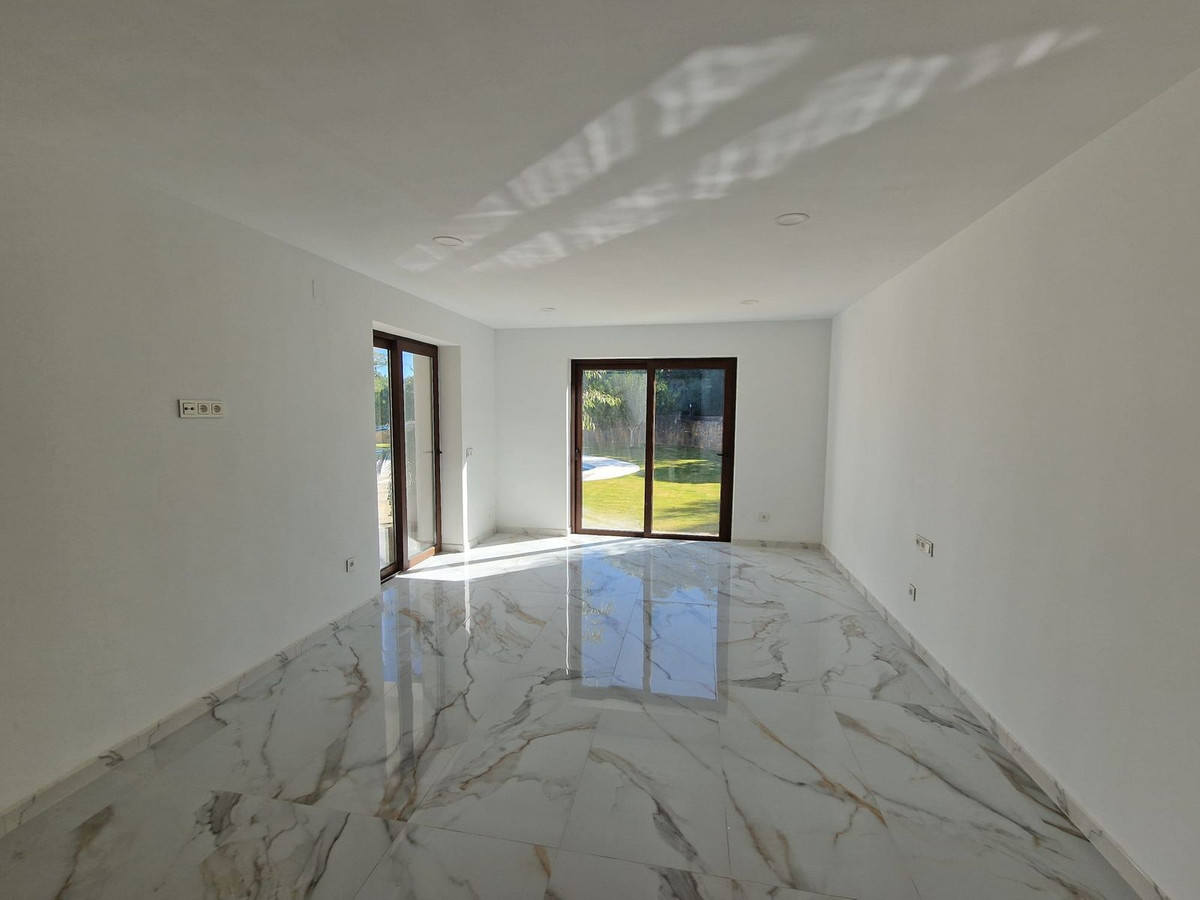 Villa individuelle à Sotogrande. Entièrement rénovée, elle comprend 4 chambres, 4 salles de bains, un WC invités, un vaste séjour avec cheminée, un grand salon et une grande cuisine dînatoire. Garage fermé, grand jardin, piscine et court de tennis. Surface habitable de 682 m² sur un terrain de 2 400 m².